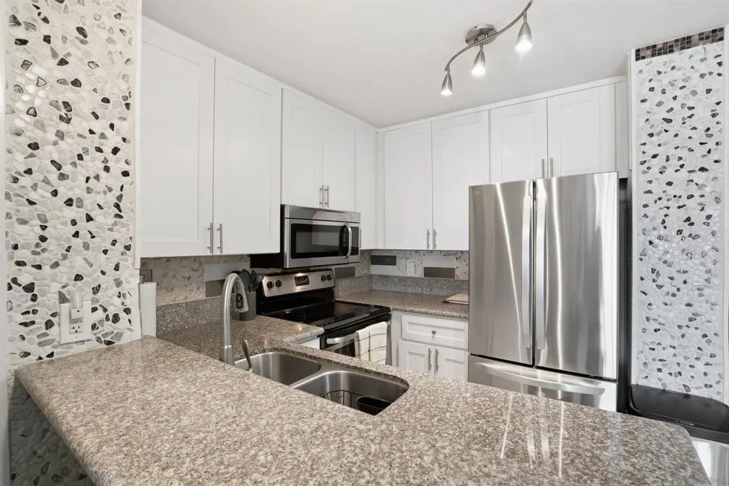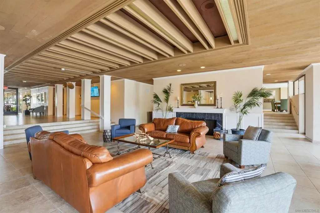 Life’s A Beach!!! The Plaza has one of the best locations in all of Pacific Beach. The beach and bay are only a few blocks away and the restaurants and shopping on Garnet are just outside your doorstep. This complex is loaded with amenities and feels like a luxury hotel as you enter! Here you can enjoy multiple pools, spas, saunas, tennis courts, an exercise/weight room, movie room, library, and more. Relax with a book while sitting next to the one of its serene water features and fountains. This well maintained and updated one bedroom unit features a great layout with an open feel in the living room and kitchen. The kitchen has matching stainless steel appliances, bar seating, a dining area with room for a 4-person table and a large pantry. Its west facing balcony off of the living room gets great sunlight and coastal breezes. It has a large bedroom and bathroom with double sinks and plenty of closet space. One of the bonuses of this unit is that it is conveniently located near the laundry room, one of the quieter pools/spas and also stainless-steel gas grills for your summer BBQ’s!