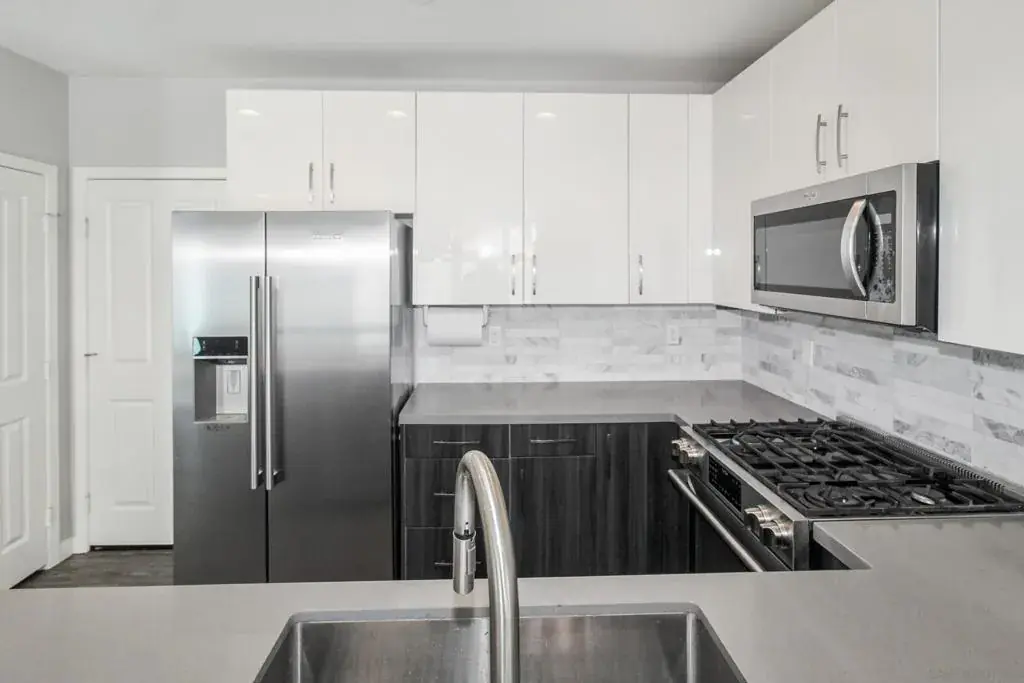 Model Home. Like New, The Contemporary Coastal Living in Pacific Beach – 2114 Felspar St, San Diego, CA 92109. Step into the ultimate Pacific Beach lifestyle with this amazing 4-bedroom, 3-bathroom condominium, with 1,800 sq. ft. of modern design elegance. This isn’t just a home; it’s your gateway to coastal bliss, free from HOA fees and meetings, thanks to a clever condo lot split that creates two independent homes. Arrive through a charming front gate and shared walkway or slip in discreetly via the quiet alley to your two-car garage and additional parking spaces. Inside, an open-concept design welcomes you with a showcase atrium staircase that spans all three levels, bathing the home in golden natural light. The ground floor hums with possibility: a sleek, modern kitchen flows effortlessly into the dining and living areas, perfect for lively gatherings or cozy nights in. A versatile bonus room awaits your vision—transform it into a fourth ground-level bedroom, a chic home office, or a welcoming guest retreat. Ascend to the upper levels, where three thoughtfully designed bedrooms offer comfort and style. The primary suite is your personal sanctuary, complete with a private deck for morning coffee or starlit evenings. But the real showstopper? An expansive rooftop deck and recreational area, serving up panoramic peek views of Mission Bay and the twinkling San Diego skyline. Picture yourself hosting sunset soirees, lounging in the sun, or cheering for Mission Bay summer-long fireworks from this unobstructed perch.