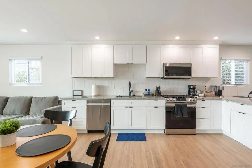 Opportunity is the name of the game with this remodeled two-unit property in the heart of Pacific Beach. The front unit is a recently remodeled 3-bedroom, 2-bath home featuring open-concept living on the main level with a full bath and laundry. Upstairs, you’ll find all three bedrooms and a second full bath, including a primary suite with bay, SeaWorld, and downtown views plus a private deck to enjoy ocean breezes and sunsets. The rear unit is a charming 2-bedroom, 1-bath bungalow full of classic PB character, complete with an inviting front porch and a back patio perfect for relaxing or storing surfboards and bikes. Both units are equipped with mini-split systems, and the property offers ample parking with three off-street spaces. Ideally located within walking distance to Mission Bay, Kendall-Frost Preserve, Crown Point Park, and Mission Bay Golf Course, plus a short stroll to Campland for live music, food, boating, and summer fun. Whether you’re seeking an investment, second home, or an owner-occupant opportunity with rental income at the beach, this property truly checks all the boxes.