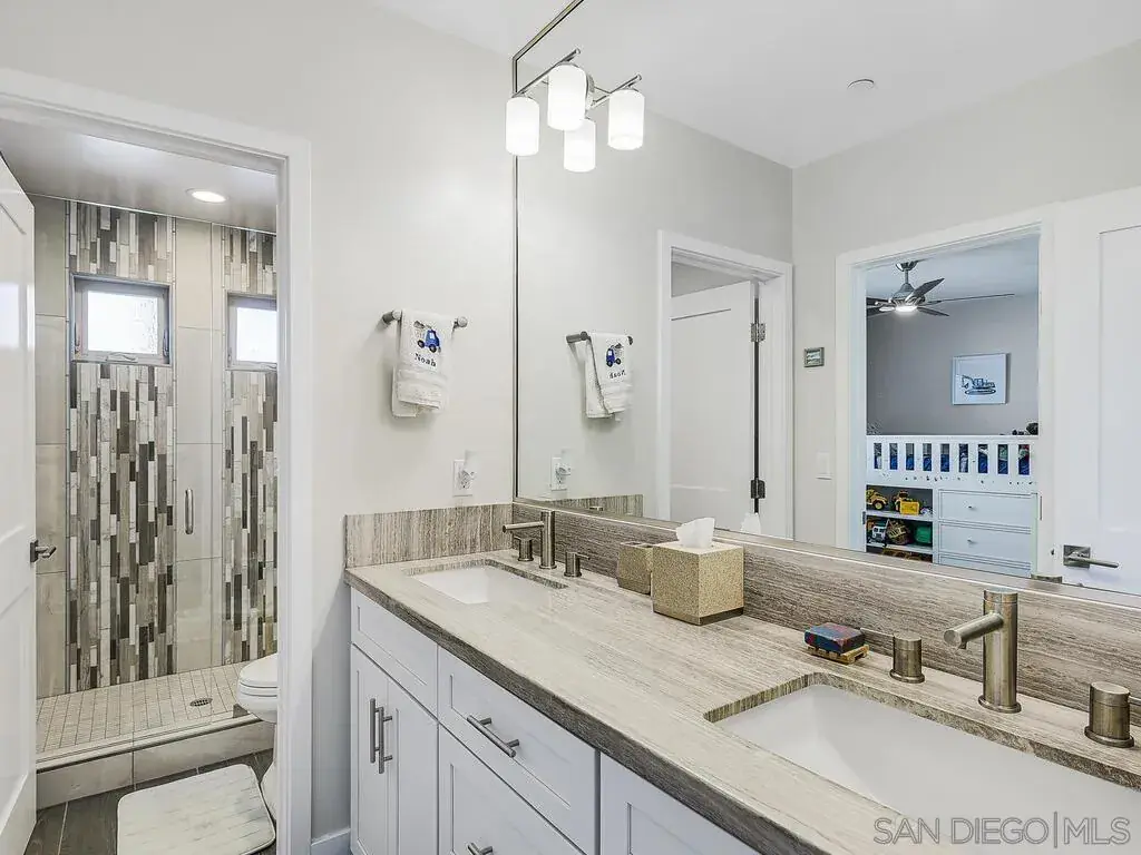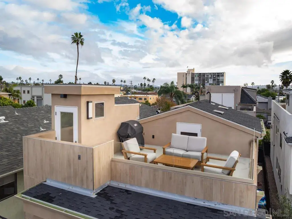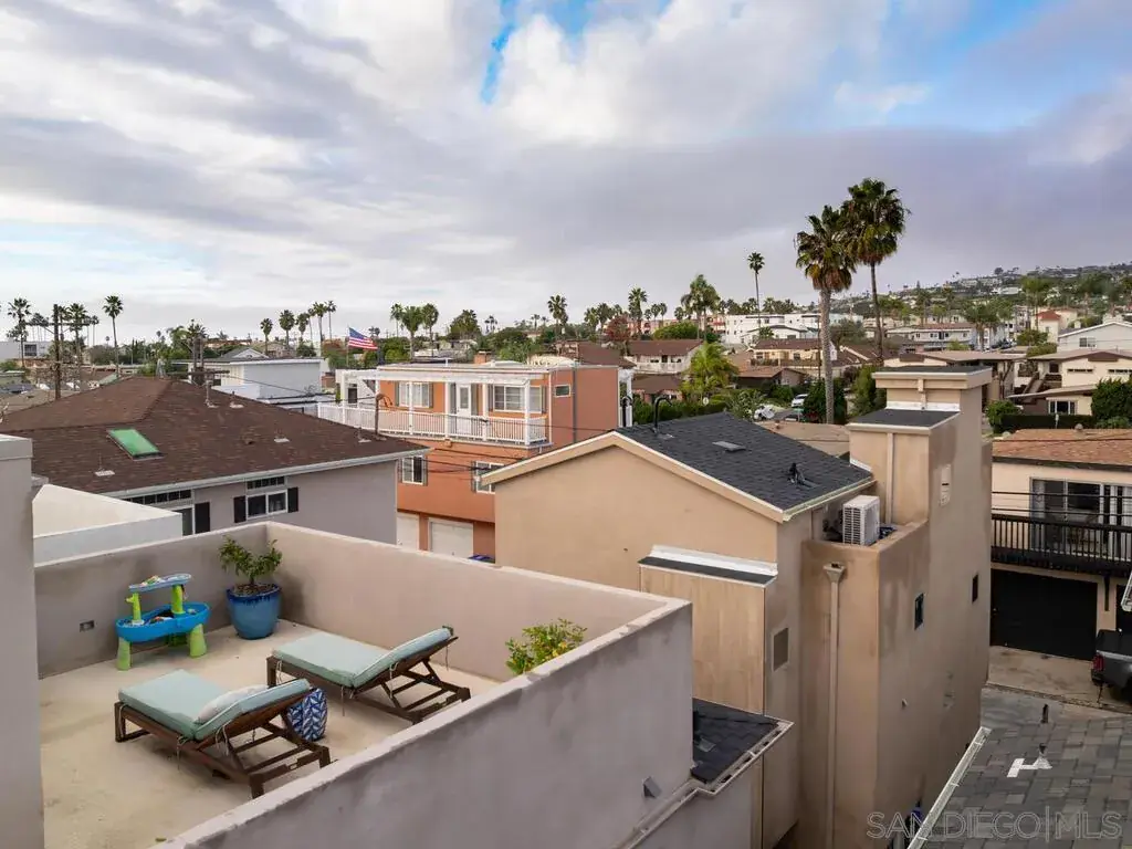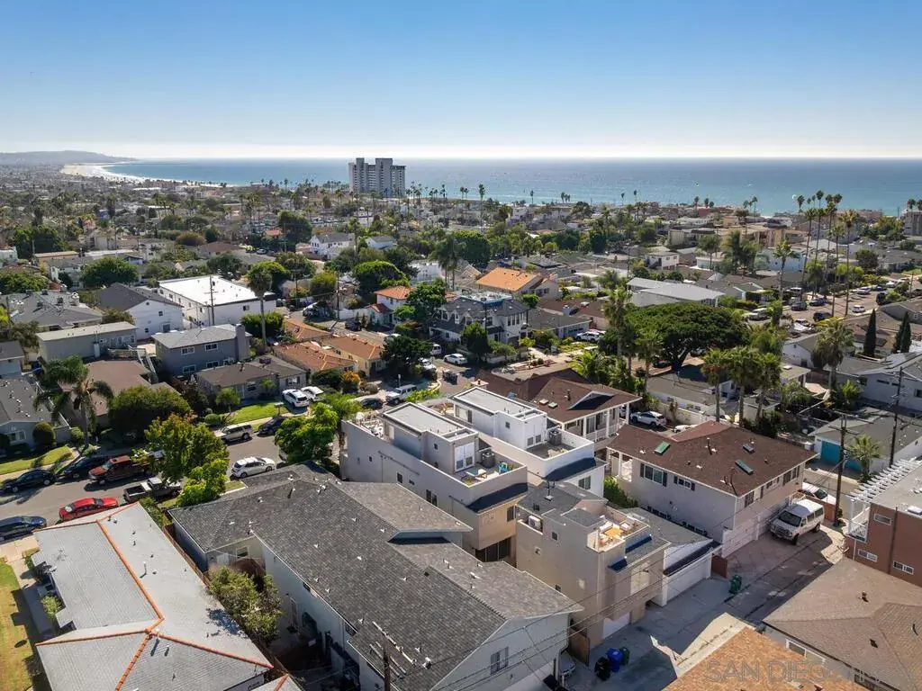 Built in 2018, this North Pacific Beach modern coastal home has been immaculately maintained, boasts high end stainless appliances and designer finishes throughout, and comes with an open and intelligent floor plan perfect for formal entertaining or just casual day to day beach living. The recent addition of a detached, fully permitted 1BR/1BA 602sqft ADU complete with separate entrance, laundry and its own private roof deck, only adds to the flexibility of this offering with just under 3000sqft of total living space. Three blocks to the beach, walk to restaurants, shops, and both elementary and middle schools. Enjoy bay, ocean and coastline views south to the Coronados. see supplement for more property details… The main house is 2331sqft, with 3BR/3.5BA, an optional den/family room/office on main floor and an additional suite on the 3rd level with full bath, wet bar area, wine fridge, and expansive deck with fireplace and views of the coastline to the south. Finishes include shaker cabinets in the kitchen, quartz counters, Jenn-Air extra wide range with hood and pot-filler and custom back splash. La Cantina doors open from the family room to the front patio, while large wall to wall sliders open the living area to the back yard patio providing a seamless flow of indoor/outdoor living. The master suite has its own private lanai, fireplace, walk in closet and bath with custom tile work and fixtures, rainfall shower and separate tub. There’s a 2-car detached garage off the alley with ample height for overhead storage. Above the garage sits the newly constructed ADU, providing an additional 602sqft (as per plans) of living space with the same quality of finishes as the main house. The ADU has its own private entry, separate bedroom from living area, laundry closet and a large private roof deck with views. ***Please note the main house is 3BR/3.5BA 2331sqft (assessor’s records), ADU is a 1BR/1BA 602sqft (as per approved plans, not yet in assessor’s records). MLS description of property combines both.