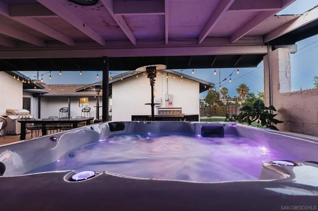 Welcome to your modern coastal retreat in the heart of Ocean Beach! This fully remodeled 3-bedroom, 2-bathroom home has been thoughtfully designed with high-end furniture, designer finishes, and a seamless open floor plan that invites effortless indoor-outdoor living. Sliding glass doors connect the living spaces to both front and back decks, creating the perfect flow for entertaining or relaxing. The gourmet kitchen features an oversized island, stainless steel appliances, and ample storage, opening to the spacious living room with a pool table, large-screen TV, and plenty of seating. The primary suite offers a spa-like bathroom with a dual shower, while two additional bedrooms provide flexible accommodations for family and guests. Outside, a true backyard oasis awaits, complete with a covered jacuzzi, propane BBQ, outdoor dining and lounge areas, turf game zone with bocce, corn hole, and ring toss, as well as string lighting for magical evenings. Additional highlights include central A/C and heat, EV charger, 2-car garage plus driveway parking, laundry, fast WiFi, and kid- and dog-friendly amenities. Ideally located just minutes from the beach, Ocean Beach pier, dining, shopping, and surf, this home offers the perfect blend of modern comfort and coastal charm. Welcome to your modern coastal retreat in the heart of Ocean Beach! This fully remodeled 3-bedroom, 2-bathroom home has been thoughtfully designed with high-end furniture, designer finishes, and a seamless open floor plan that invites effortless indoor-outdoor living. Sliding glass doors connect the living spaces to both front and back decks, creating the perfect flow for entertaining or relaxing. The gourmet kitchen features an oversized island, stainless steel appliances, and ample storage, opening to the spacious living room with a pool table, large-screen TV, and plenty of seating. The primary suite offers a spa-like bathroom with a dual shower, while two additional bedrooms provide flexible accommodations for family and guests. Outside, a true backyard oasis awaits, complete with a covered jacuzzi, propane BBQ, outdoor dining and lounge areas, turf game zone with bocce, corn hole, and ring toss, as well as string lighting for magical evenings. Additional highlights include central A/C and heat, EV charger, 2-car garage plus driveway parking, laundry, fast WiFi, and kid- and dog-friendly amenities. Ideally located just minutes from the beach, Ocean Beach pier, dining, shopping, and surf, this home offers the perfect blend of modern comfort and coastal charm.