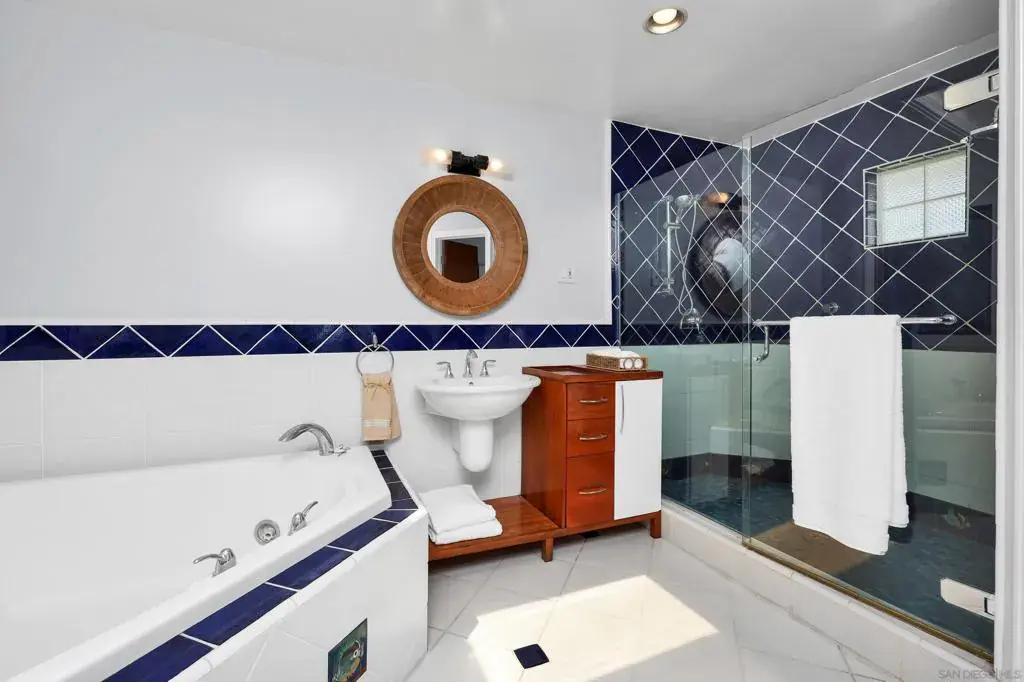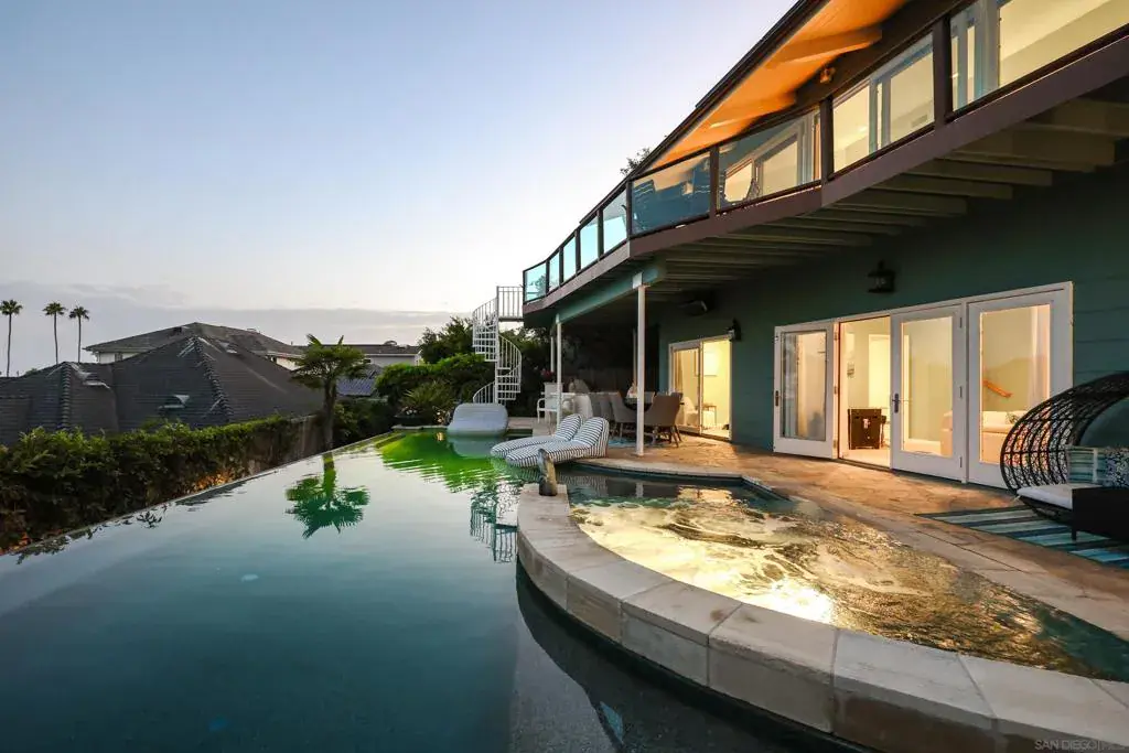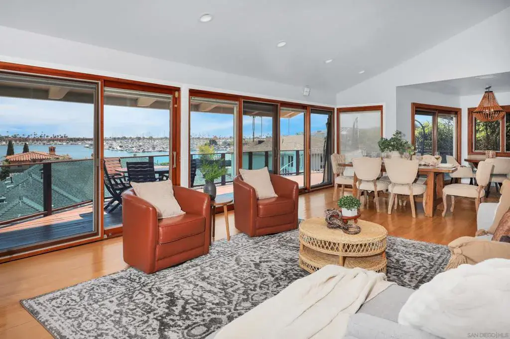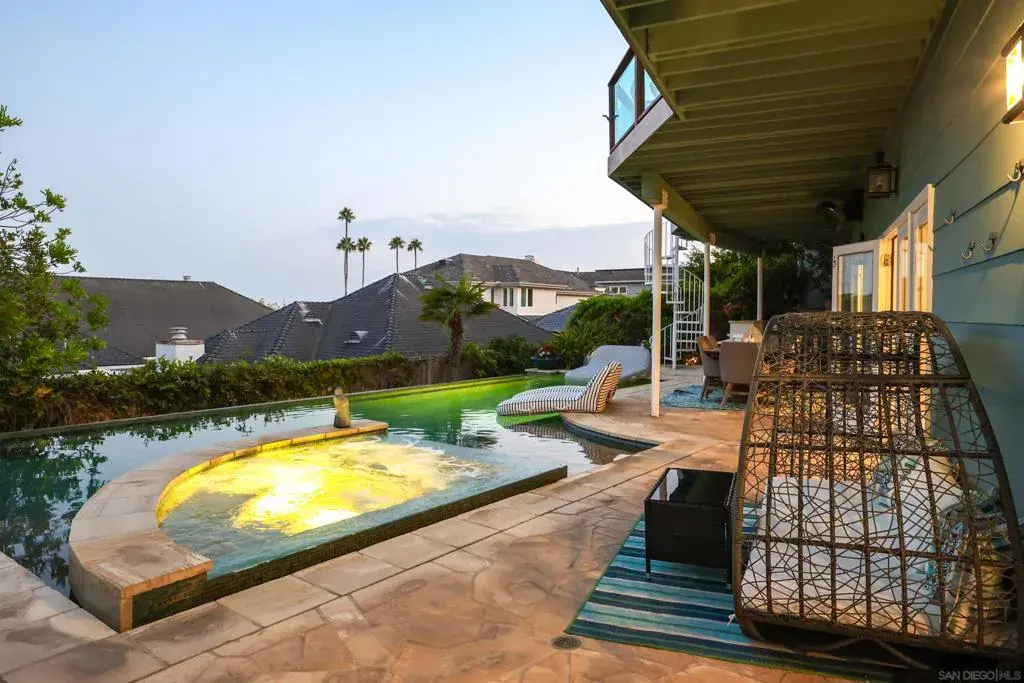 Major Price Adjustment! Welcome to 885 Rosecrans in the prestigious La Playa neighborhood of Point Loma. This is a stunning 4061 sq. ft. sophisticated home with a spectacular Bay View, an Infinity Pool and a Spa-like vibe upon entry. It has been upgraded with new paint inside and out and is perfectly situated in one of the area’s most desirable neighborhoods within walking distance of Kellogg’s Beach along the Bessemer Trail just around the corner. It’s also within strolling distance of the La Playa Village area, yacht clubs, stores and various eateries. This home boasts a unique floor plan offering the flexibility of two homes in one. Upstairs is a level entry right off of the gated portico with 2 Bedrooms and 2 ½ Baths,laundry, chef’s kitchen delivering effortless entry and an up-close Bay View of the Point Loma/La Playa Yachting Basin with an abundance of natural light and tranquility, especially enjoyed from the large Veranda overlooking the pool and rear yard. The Downstairs can be reached from the internal staircase or from a separate stairway along the side of the house offering private entry. The downstairs can be locked-off if desired for a “second unit” featuring 4 Bedrooms 2 ½ Baths with Poolside and Jacuzzi access from the Primary Bedroom and a Livingroom. The décor is “Modern So-Cal Beach”. This area features a second kitchen, laundry and media room with a huge, big screen. Thus, the upstairs and downstairs can be used as one large home, or optionally as separate living quarters, say for teenaged children, an extended family, extra rental income, etc. Welcome to 885 Rosecrans, located in the distinguished La Playa neighborhood of Point Loma. This impressive 4,061 sq. ft. residence offers sophisticated living with sweeping bay views, an infinity pool, and a spa-inspired atmosphere upon entry. Recently enhanced with new interior and exterior paint, the property enjoys a prime setting within one of the area’s most sought-after communities, just a short walk from Kellogg’s Beach via the Bessemer Trail. It is also conveniently positioned near La Playa Village, yacht clubs, retail shops, and various dining establishments. The lower level is accessible via an interior staircase or a separate exterior entry, allowing for privacy and the option to lock off this space as a second unit. This level includes four bedrooms, two and a half bathrooms, direct access to the pool and jacuzzi from the primary bedroom and living room, and a modern Southern California beach aesthetic. Additional amenities include a second kitchen, laundry area, and a media room with an oversized screen. The home may be configured as a single expansive residence or divided into distinct living quarters—suitable for teenage children, extended family, or potential rental income. The rear yard further enhances the property with an outdoor kitchen and barbecue, a dining deck, and a fire pit, creating an ideal environment for entertaining and relaxation.