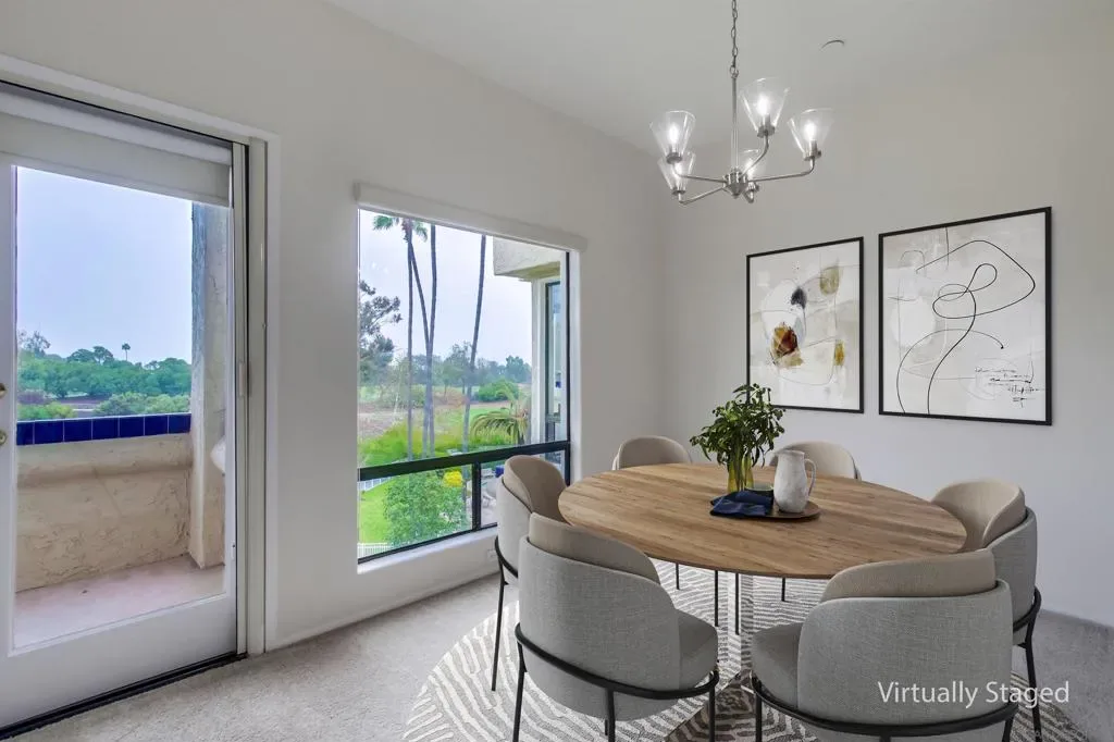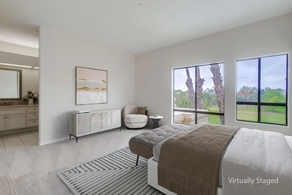 Spectacular top floor corner residence in The Summit at Masters Hill offering panoramic views spanning West, North, and East overlooking the Bernardo Heights Golf Course and surrounding mountains. This exceptional home is ideal as a snowbird or lock and leave retreat or a full time residence. Designed for effortless single level living, this light and bright home features large picture windows that capture the views, brand new carpet, fresh interior paint, and a brand new HVAC system for year round comfort. The updated kitchen offers ample storage, a pantry, and generous counter space. The spacious primary suite features a dual vanity and abundant closet space. The second bedroom offers mirrored closet doors and convenient direct access to the second bathroom, making it perfect for guests or a home office. Enjoy beautiful pool and spa views from the private balcony. The building offers elevator access with no interior or exterior stairs, creating easy accessibility and a truly low maintenance lifestyle. HOA includes membership to the Bernardo Heights Community Center with pools, tennis courts, fitness center, and more. Located in the award winning Poway Unified School District.