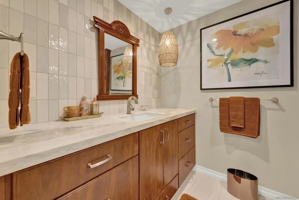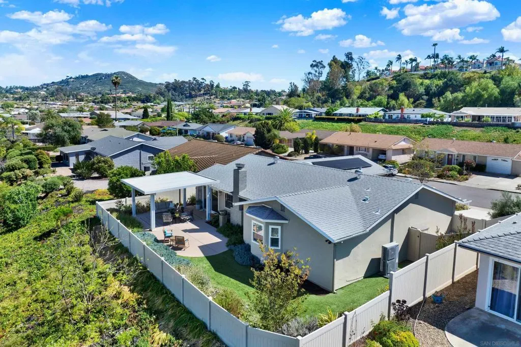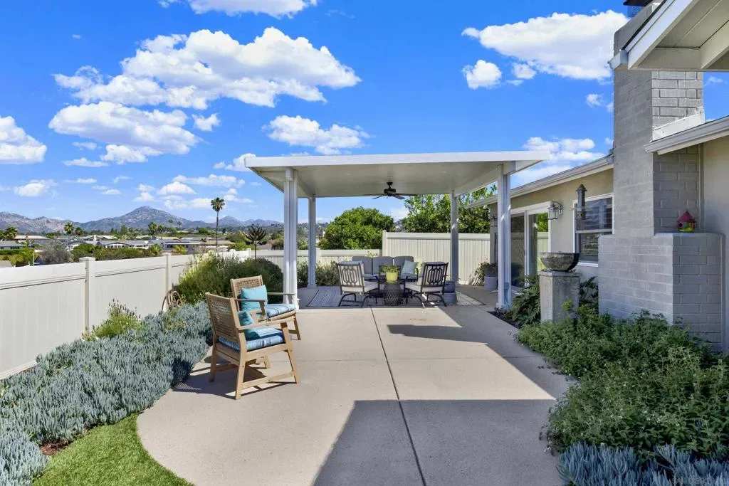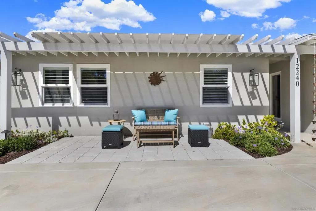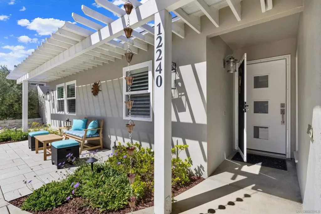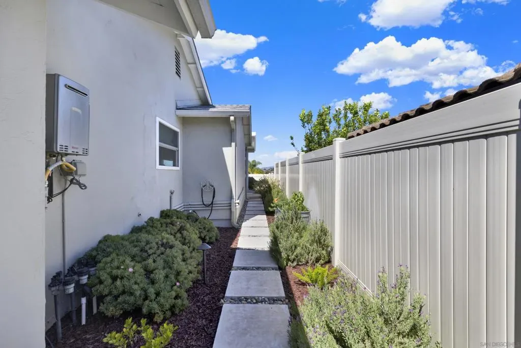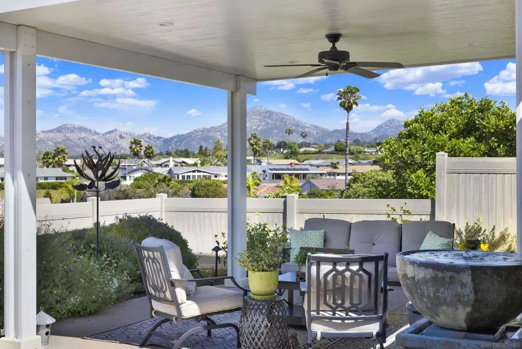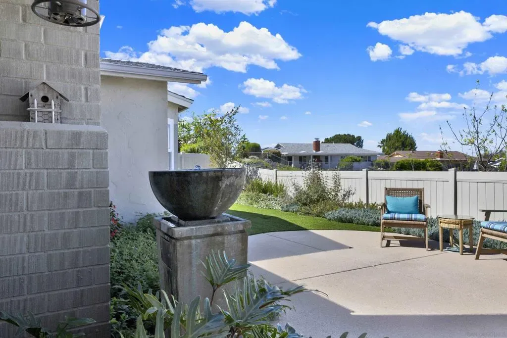 Step into luxury with this beautifully remodeled home that effortlessly combines style, comfort, and functionality. From the moment you arrive, you’ll be captivated by the custom landscaping, charming curb appeal and the promise of VIEWS! Owned solar is an added bonus to reduce the cost of utilities. The heart of the home is a chef’s dream kitchen, featuring a stunning custom marble Island. Add custom cabinetry with convenient pull-out drawers, two durable Blanco sinks that resist scuffs and stains, and gleaming countertops that elevate every meal prep. Top-of-the-line appliances and abundant storage make entertaining a breeze. Throughout the home, enjoy plenty of storage options as well as bathrooms having been stylishly renovated, offering modern finishes and thoughtful design. A new 2024 AC unit keeps the temperature just right year-round. Unwind by the fireplace featuring beautiful mother of pearl tiles, or enjoy gatherings under your outdoor covered patio while taking in the beautiful views of Rancho Bernardo and beyond. The outdoor space is impressive, with professionally designed landscaping in both the front and backyard—ideal for relaxing evenings or weekend entertaining. This home is the perfect blend of high-end finishes and comforting livibility. Truly a must-see! Located in an active Adult community with pool, clubhouse, and a wide range of amenities. This turnkey home truly offers it all.