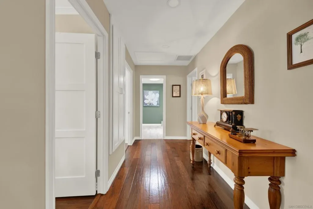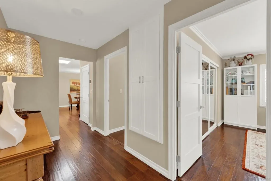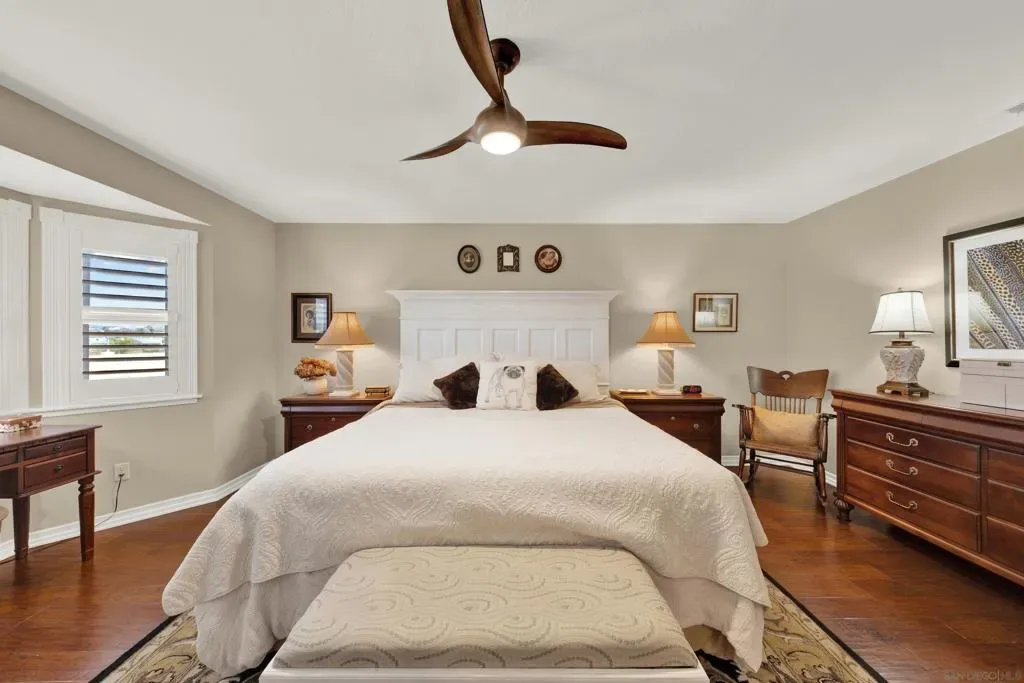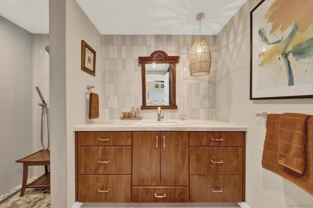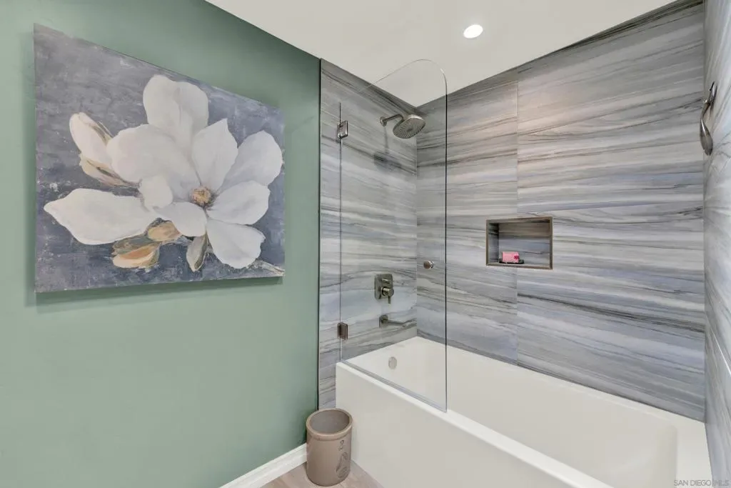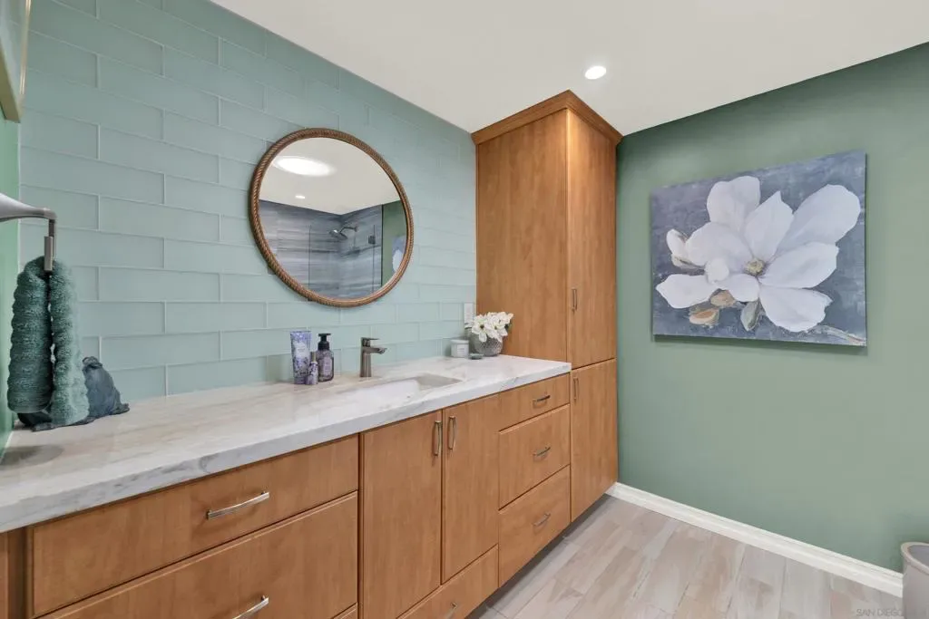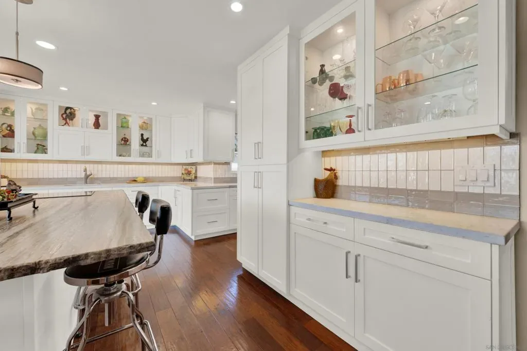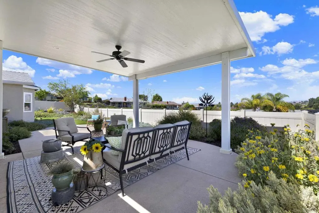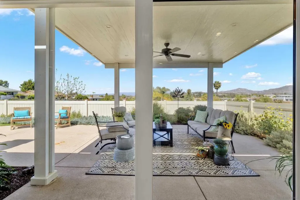 Step into luxury with this beautifully remodeled home that effortlessly combines style, comfort, and functionality. From the moment you arrive, you’ll be captivated by the custom landscaping, charming curb appeal and the promise of VIEWS! Owned solar is an added bonus to reduce the cost of utilities. The heart of the home is a chef’s dream kitchen, featuring a stunning custom marble Island. Add custom cabinetry with convenient pull-out drawers, two durable Blanco sinks that resist scuffs and stains, and gleaming countertops that elevate every meal prep. Top-of-the-line appliances and abundant storage make entertaining a breeze. Throughout the home, enjoy plenty of storage options as well as bathrooms having been stylishly renovated, offering modern finishes and thoughtful design. A new 2024 AC unit keeps the temperature just right year-round. Unwind by the fireplace featuring beautiful mother of pearl tiles, or enjoy gatherings under your outdoor covered patio while taking in the beautiful views of Rancho Bernardo and beyond. The outdoor space is impressive, with professionally designed landscaping in both the front and backyard—ideal for relaxing evenings or weekend entertaining. This home is the perfect blend of high-end finishes and comforting livibility. Truly a must-see! Located in an active Adult community with pool, clubhouse, and a wide range of amenities. This turnkey home truly offers it all.