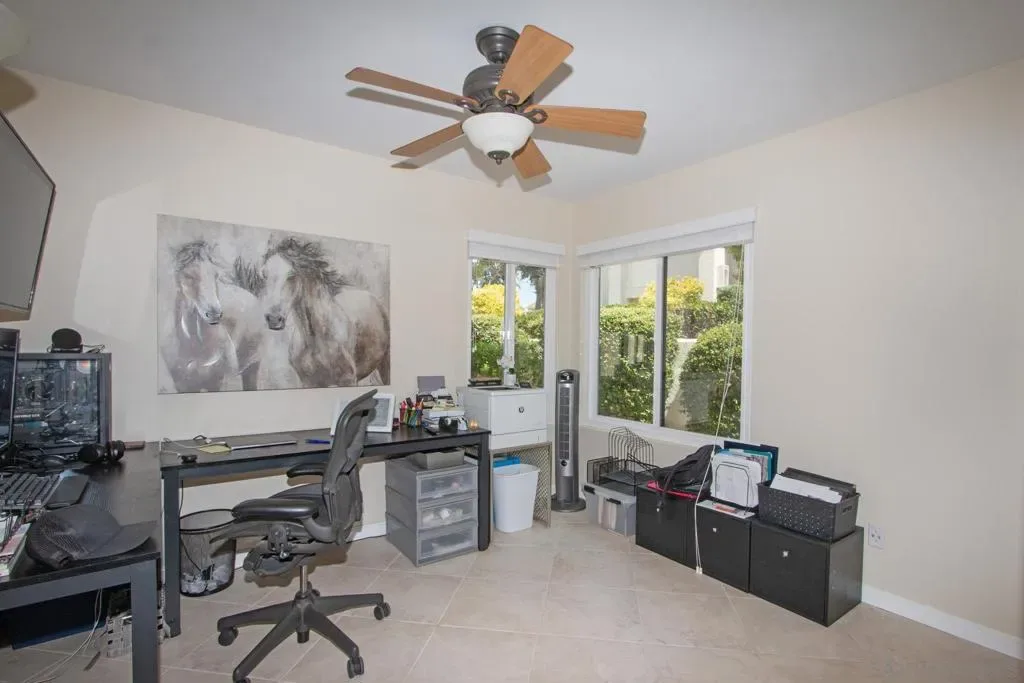 Ideally situated 55+ community of Oaks North Villas. Multiple dual paned windows, plantation blinds, afford splendid views N, E, and S. Sit back on your patio and enjoy your BBQ, coctails, coffee, and then lift some weights. What about sme Tai Chi? Just steps from your new home you’ll access winding, beautifully manicured paths for walking and jogging, with benches for contemplating the exquisite golf courses. This community is just a roll or a stroll from Oaks North Community Center, Golf Courses, Historic Bernardo Winery, Lake Hodges, and the Mall. Easy access to freeways in all directions.