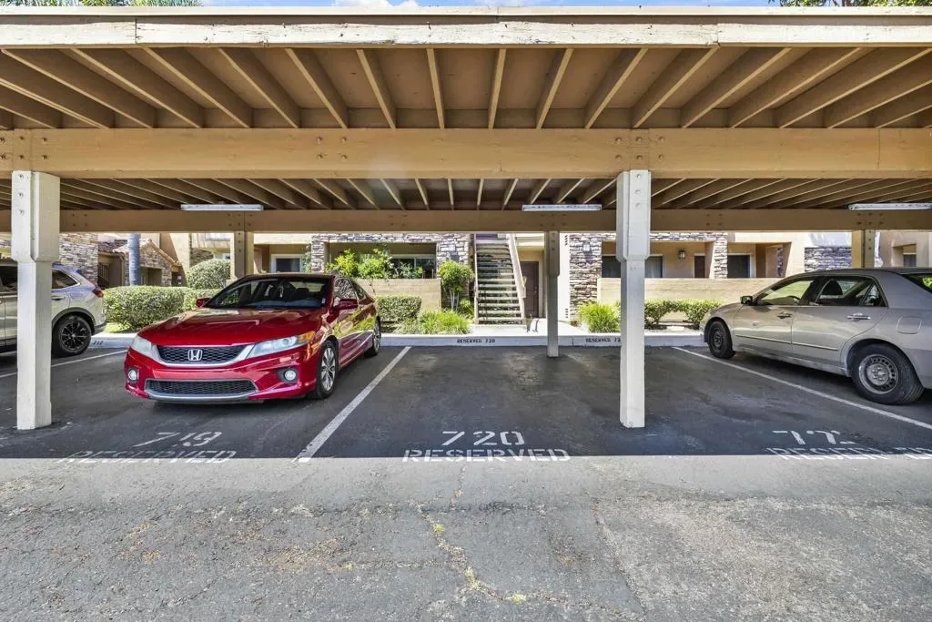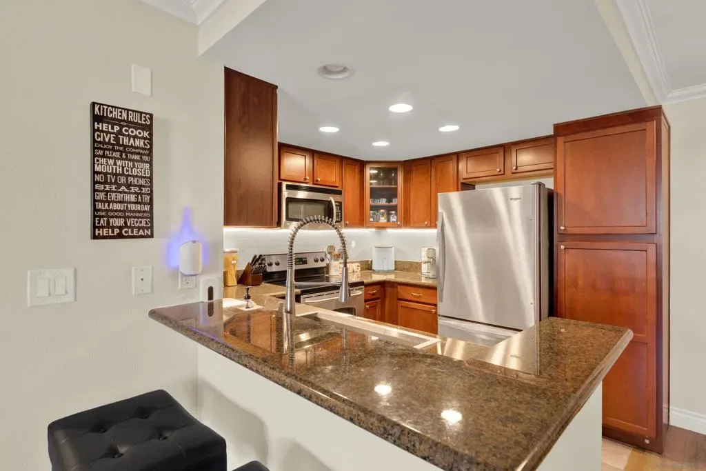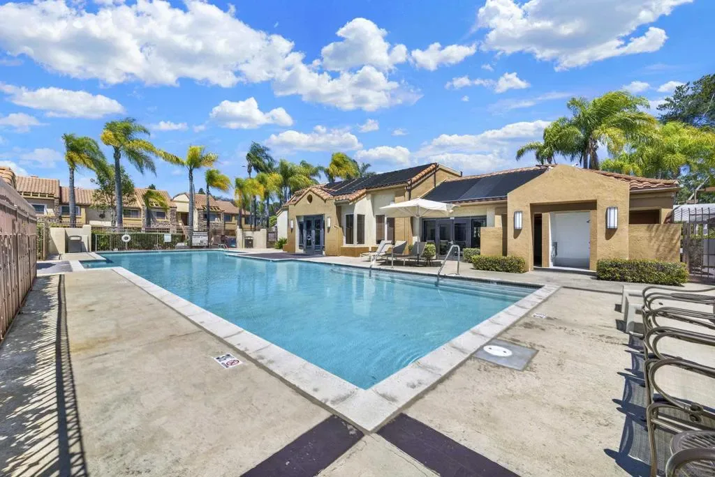 Turn-key, thoughtfully upgraded, and a perfectly positioned end unit — this is the one that feels like home the moment you walk in. This highly upgraded ground level home features newer major systems including HVAC, water heater, and washer/dryer. Inside, you’ll find new, warm luxury vinyl plank flooring (installed in 2024) flowing seamlessly through most of the home, complemented by a charming Kohler oversized sink in the kitchen, SS appliances, Bosch dishwasher, Bosch thermostat, and refreshed, quality fixtures and finishes that add a modern, elevated touch. Plenty of storage throughout the home, including by the entryway and in the hallway. Crown moldings in the living spaces and new baseboards throughout the home. Indoor stacked electric washer and dryer perfectly situated in the oversized bathroom. Two sliding doors (one in the primary suite and one in the living room) provide ample light and quiet breezes during the warmth of the summertime, and are greeted by an oversized covered patio, complete with an outdoor storage closet. Step outside and enjoy serene, tree-lined walkways that create a sense of calm and community. Residents have access to an impressive suite of amenities including two private pools, a fitness and recreation center, gym, tennis court, EV charging stations, and abundant guest parking close to the home. Ideally located within the award-winning Poway Unified School District and just minutes from major employers like Apple and Sony, this home also offers proximity to the premier shopping, dining, I-15 freeway, and lifestyle hubs of Rancho Bernardo and 4S Ranch. Come see this intentionally upgraded home today.