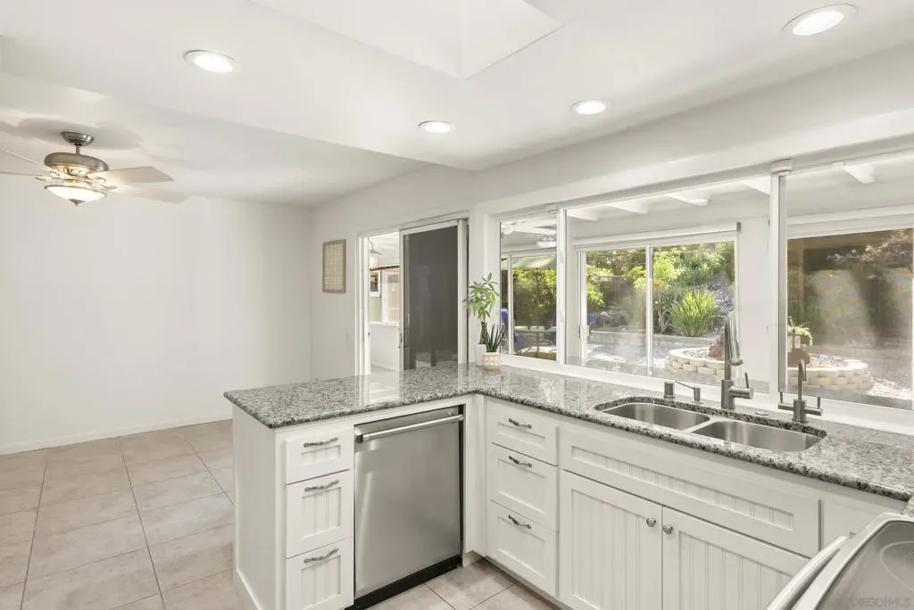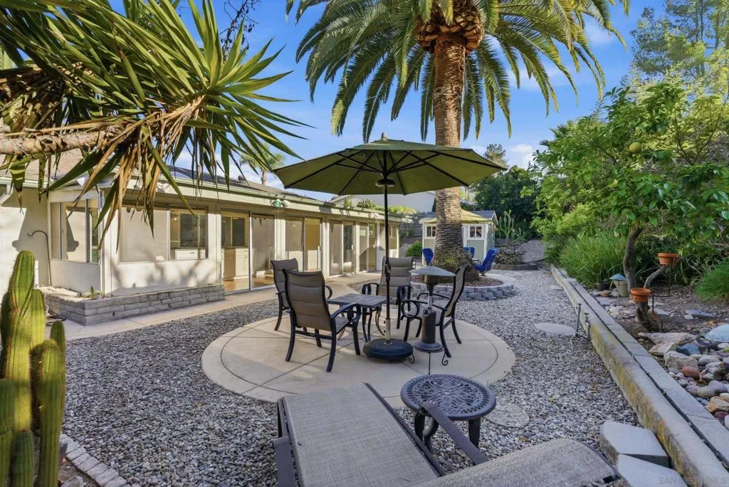 Perched at the top of a quiet cul-de-sac, this beautifully upgraded home offers stunning views, privacy, and an expansive 0.3-acre lot. The true standout is the park-like backyard, thoughtfully designed with lush greenery, mature fruit trees, multiple seating areas, and a low-maintenance irrigation system—creating a serene setting ideal for both relaxing and entertaining. Additional highlights include fully paid-off solar and a new air conditioning system. From the moment you arrive, you’ll notice the paver driveway (approx. $20,000 upgrade) along with fresh paint and pride of ownership throughout. The home also features an oversized two-car garage, offering ample space for storage or hobbies. Inside, enjoy a light-filled layout with skylights, a newer kitchen with granite countertops, and a sunroom that extends your living space and brings the outdoors in. This home combines elevated positioning, thoughtful upgrades, and a truly special outdoor environment. (55+ Community)