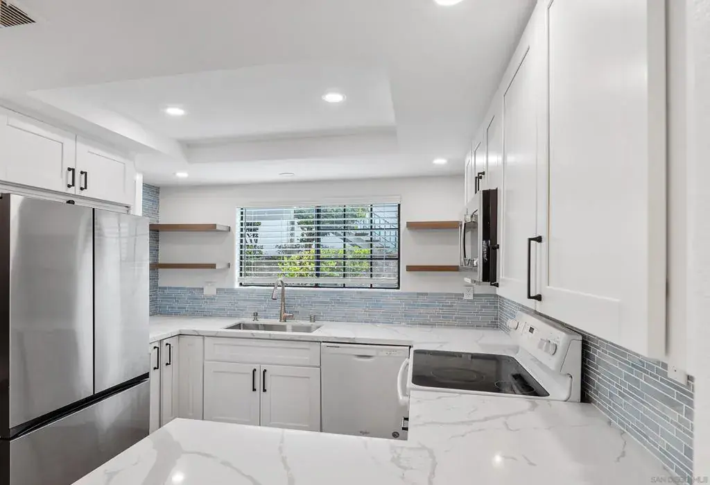 Refined single-story, first floor living awaits in the highly coveted Bernardo Heights community of Mira La Paz. This light-filled three-bedroom, two-bath end-unit residence offers privacy and effortless flow. Thoughtfully upgraded, this home showcases a beautifully remodeled kitchen with soft-close cabinetry and elegant quartz countertops. Wide-plank luxury vinyl flooring extends throughout, complemented by an upgraded gas fireplace, fresh interior paint, new trim and baseboards, and curated designer finishes. Additional highlights include: a newer water heater installed in 2022 and a detached TWO-car garage providing generous parking and storage. The HOA offers exceptional value, covering water, trash, cable, internet, exterior building maintenance/landscaping, and membership to the exclusive Bernardo Heights Clubhouse. The Bernardo Heights Clubhouse features a fitness center, 2 pools (main pool heated to 82 degrees F), wading pool, spa, locker rooms, tennis courts, 4 pickleball courts, 2 electric-gas grills, 2 basketball hoops, ping pong table, 2 pool tables, foosball, and a swim instructor and private tennis pro are available for lessons (fee-based). Lucido Park (close by) features 4 tennis courts, a playing field, 2 charcoal BBQs, and a children’s play area. Ideally located within the award-winning Poway Unified School District and mere minutes away from freeway access, this gem won’t last long! Come see it today before it’s too late!