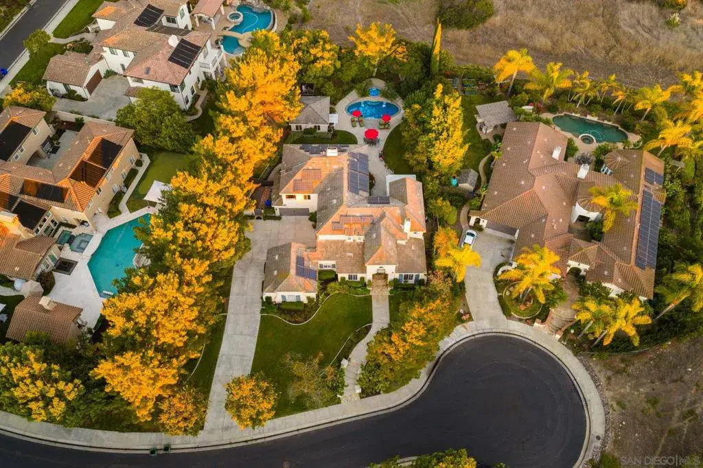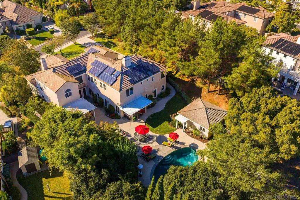 Welcome to 17117 Tallow Tree Lane — a wonderful home nestled within the exclusive, gated enclave of Savenna, one of San Diego’s most coveted communities in the prestigious 92127 zip code. This inviting residence spans over 5500 square feet and includes a fully permitted and detached guest house/casita, offering a total of six bedrooms and six-and-a-half bathrooms—each space thoughtfully presented to balance comfort, privacy, and comfortable living. Perfectly positioned on a private cul-de-sac and set on a half-acre of manicured grounds, this property embodies the elements of Southern California living. The resort-style backyard features a sparkling pool and spa, built-in barbecue pavilion, and multiple outdoor lounging and dining areas—creating an ideal setting for both intimate gatherings and grand entertaining. Inside, refined updates and timeless design harmonize. The gourmet chef’s kitchen showcases Viking appliances, white cabinetry, quartz countertops, double ovens, and designer fixtures, along with a convenient bar area with wine refrigerator and sink for effortless hosting. Throughout the home, new carpet, refreshed wood flooring, and an abundance of natural light accentuate its warm and welcoming ambiance. A first-floor ensuite bedroom offers comfort for guests, complemented by a dedicated office, hobby area, and music room—spaces perfectly suited for creativity, productivity, or peaceful retreat. Upstairs, the main suite is a true sanctuary, featuring a fireplace, dual walk-in closets, a personal fitness room, and a newly remodeled spa-inspired bathroom. Three additional bedrooms—each with its own ensuite bath—ensure privacy and ease for family or guests. Additional living spaces include a tranquil library, an elegant formal dining room, and a spacious living room designed for gathering and connection. Modern convenience and sustainability are seamlessly integrated, with Tesla solar panels, two 75-gallon water heaters, a whole-home water softener, and an epoxy-coated four-car garage. The guest house extends the estate’s versatility with 441 square feet of private living space, a full bath, cooktop, and wood and tile flooring—perfect for extended family, visitors, or potential income use. Impeccably maintained and thoughtfully designed, this home offers a lifestyle defined by serenity, versatility, and style.