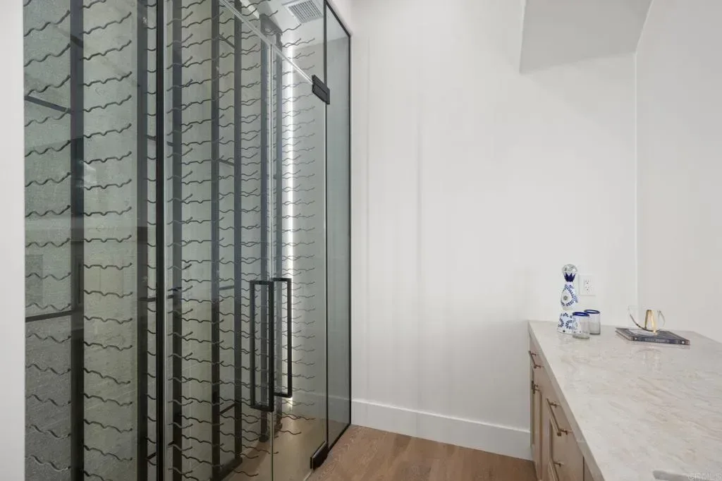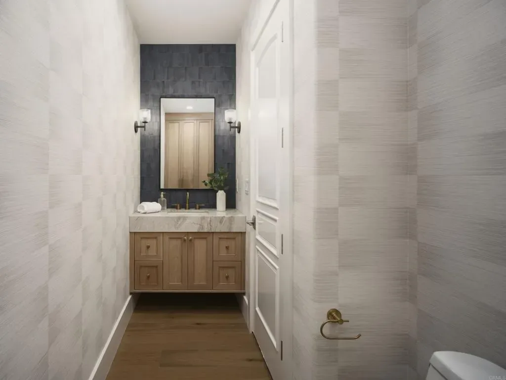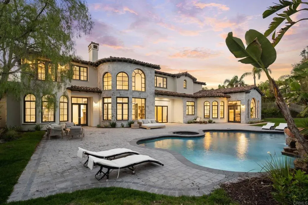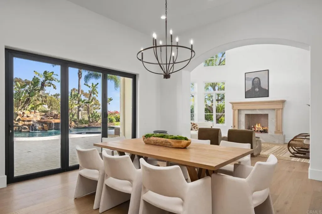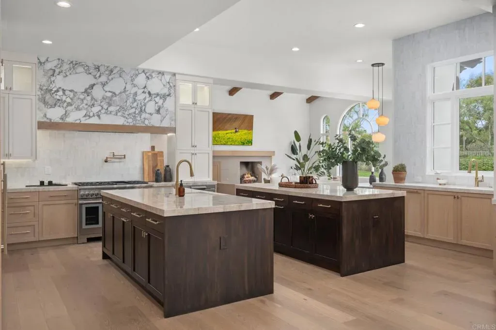 Positioned within the exclusive guard-gated enclave of Rancho Pacifica, 5146 Rancho Verde Trl presents a beautifully reimagined estate where classic architecture meets a crisp, modern refresh. Thoughtfully transformed throughout, the home pairs dramatic volume with refined finishes—soaring ceilings, elegant archways, and walls of windows that flood the interiors with natural light. Wide-plank white oak floors run seamlessly from room to room, setting a warm, elevated tone. The kitchen is the showpiece—fully redesigned for both function and style with custom white oak cabinetry, dual oversized islands, striking quartzite countertops, and a complete suite of new Thermador appliances. A sculptural marble hood detail anchors the space, while the open layout flows effortlessly into the bright family room and sunlit breakfast nook—perfect for casual mornings or hosting with ease. On the main level, the primary suite offers a true retreat, featuring a spa-caliber bath with an expansive wet room, dual shower heads, and two generous walk-in closets designed for everyday luxury. Additional guest bedrooms are spacious and private, each with its own en-suite bath—ideal for family and visitors alike. Set on just over half an acre, the grounds are designed for resort living with lush landscaping, multiple outdoor gathering areas, and a pool and spa that invite year-round enjoyment. Just minutes from Del Mar, premier schools, acclaimed golf clubs, and coastal access, this is a rare opportunity to own a turnkey home in one of the most coveted communities.