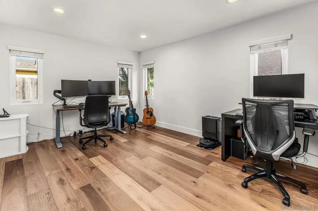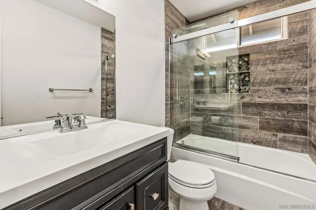 Incredible, one-of-a-kind home in the highly desirable Penasquitos Bluffs. This beautifully updated and expansive single-family residence offers 2,812 square feet of thoughtfully designed living space, featuring 5 bedrooms plus a dedicated office, 4 bathrooms, and a versatile Junior ADU—providing exceptional flexibility for today’s lifestyle. Set on one of the largest lots in the neighborhood (approximately 9,519 sq ft), this home delivers a true indoor-outdoor experience, ideal for both entertaining and everyday relaxation. A welcoming foyer opens to generous living spaces filled with natural light and soaring ceilings. The open-concept kitchen showcases stainless steel appliances, crisp white cabinetry, and an eat-in counter, flowing seamlessly into the family room. The main level includes a bedroom, full bathroom, a large office, and a private Junior ADU with its own entrance, kitchenette, and bathroom—perfect for extended family, guests, or potential rental income. Upstairs, you’ll find three additional spacious bedrooms and two well-appointed bathrooms, including a light-filled primary suite that serves as a peaceful retreat with an ensuite bath featuring a walk-in shower and soaking tub. Outdoor living truly shines with expansive front and fully flat backyard spaces designed for gatherings, barbecues, and alfresco dining, or simply unwinding in a beautiful resort-style setting complete with a sparkling pool, hot tub, and fire pit. Enjoy enhanced energy efficiency with the fully paid solar. Located within the highly regarded Poway Unified School District. Located within the highly regarded Poway Unified School District! This exceptional home is close to shopping, dining, entertainment, and offers convenient access to major San Diego freeways—bringing together space, flexibility, and a prime location in one remarkable opportunity.