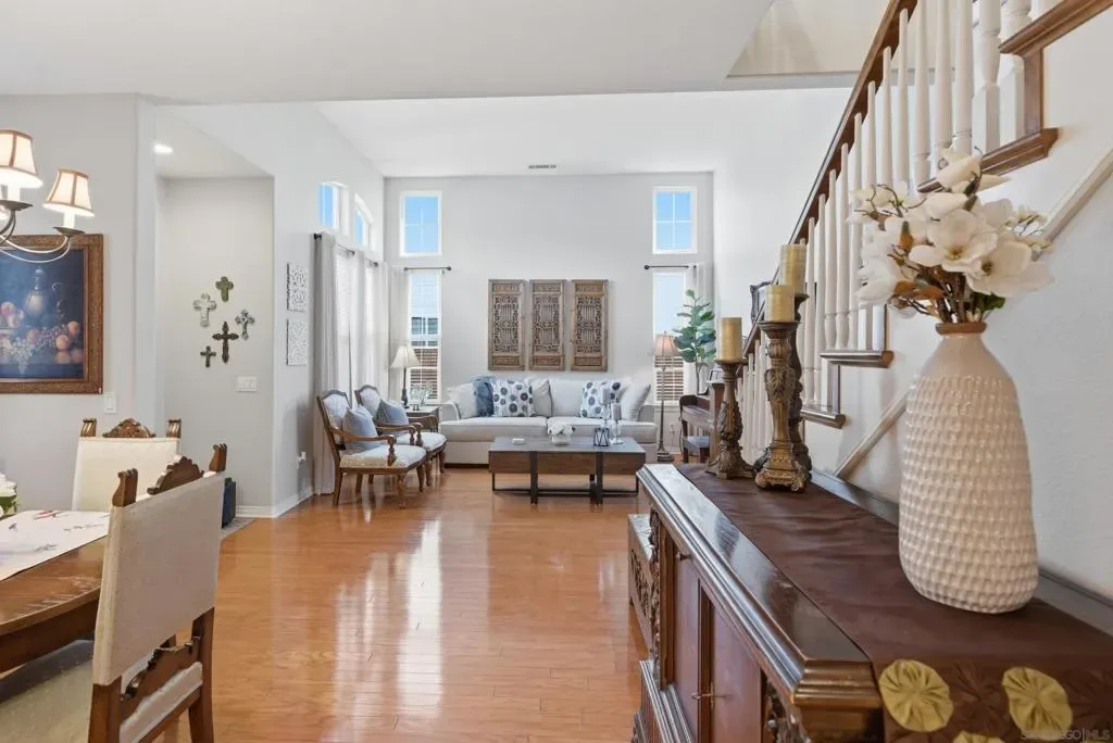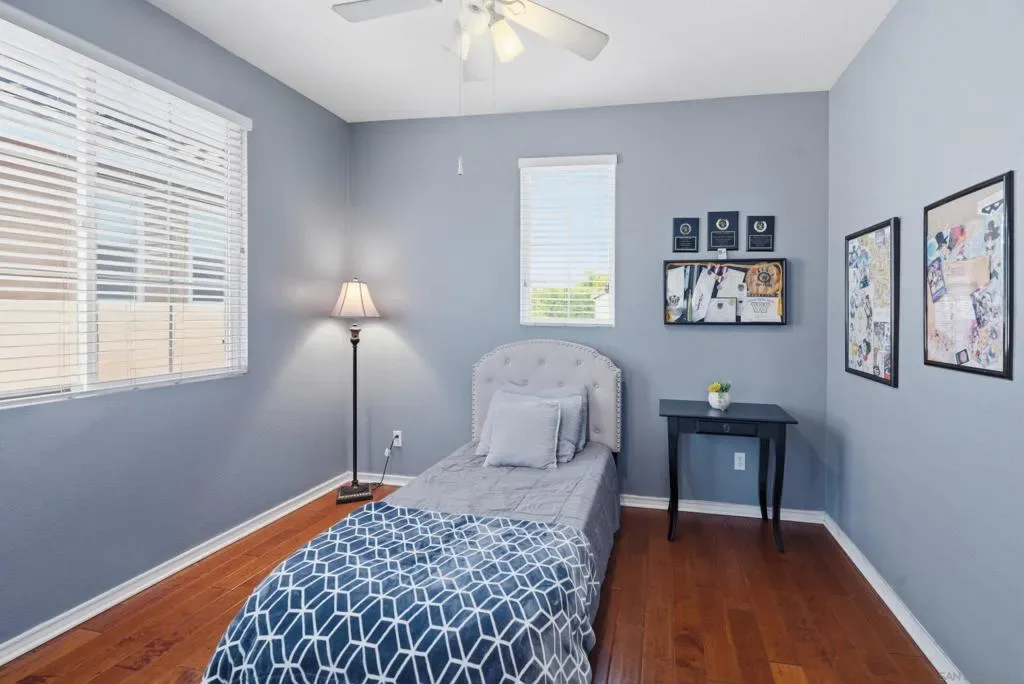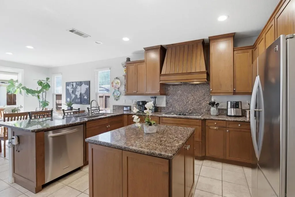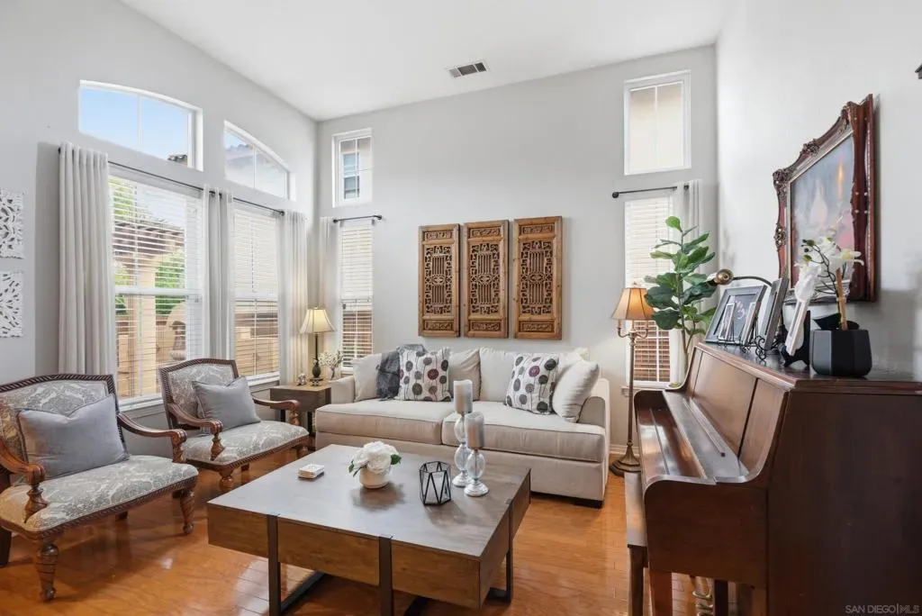 This beautifully designed home in Torrey Highlands within Rancho Peñasquitos offers 2,666 square feet of spacious living, featuring 4 bedrooms and 3 full baths, including a convenient bedroom on the entry level. The open and airy layout is enhanced by vaulted ceilings, abundant natural light, owned solar panels, Tesla charger, elegant wood flooring, and a huge upstairs loft perfect for flexible living. The kitchen is a standout with granite countertops, a 5-burner gas cooktop, and a large pantry, while the dual fireplace adds warmth and charm to multiple living spaces. The primary suite includes dual vanities, a separate shower, and a large soaking tub for a spa-like retreat. Outside, enjoy a gated large courtyard, a 3-car garage, and a private backyard designed for entertaining, complete with a swimming pool and built-in BBQ. Located within the highly regarded Poway Unified School District, the home is within walking distance to Deer Canyon Elementary School, Mesa Verde Middle School, and Westview High School. Ideally situated close to parks, restaurants, and shopping, the property also offers convenient access to California State Route 56, Interstate 15, and Interstate 5, and is just a short drive to the beach.Buyer and buyer’s agent to verify all information before the close of escrow.