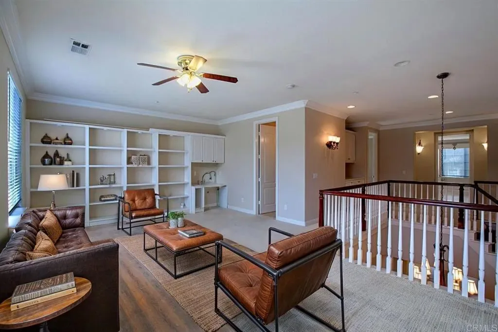 Available June 8. This beautifully situated corner-lot home offers standout curb appeal and a spacious side yard ideal for outdoor entertaining. The versatile floorplan features formal living and dining rooms, a downstairs bedroom and full bath, plus a bonus room, library/office or game room, and an elegant dual staircase. The gourmet kitchen is designed for both everyday living and entertaining, complete with two islands and a butler’s pantry. Upstairs, the expansive primary suite includes dual closets, and a generously sized laundry room adds everyday convenience. Located within the highly regarded Poway Unified School District. Tenant is responsible for utilities and gardening. Pets will be considered on a case-by-case basis.
