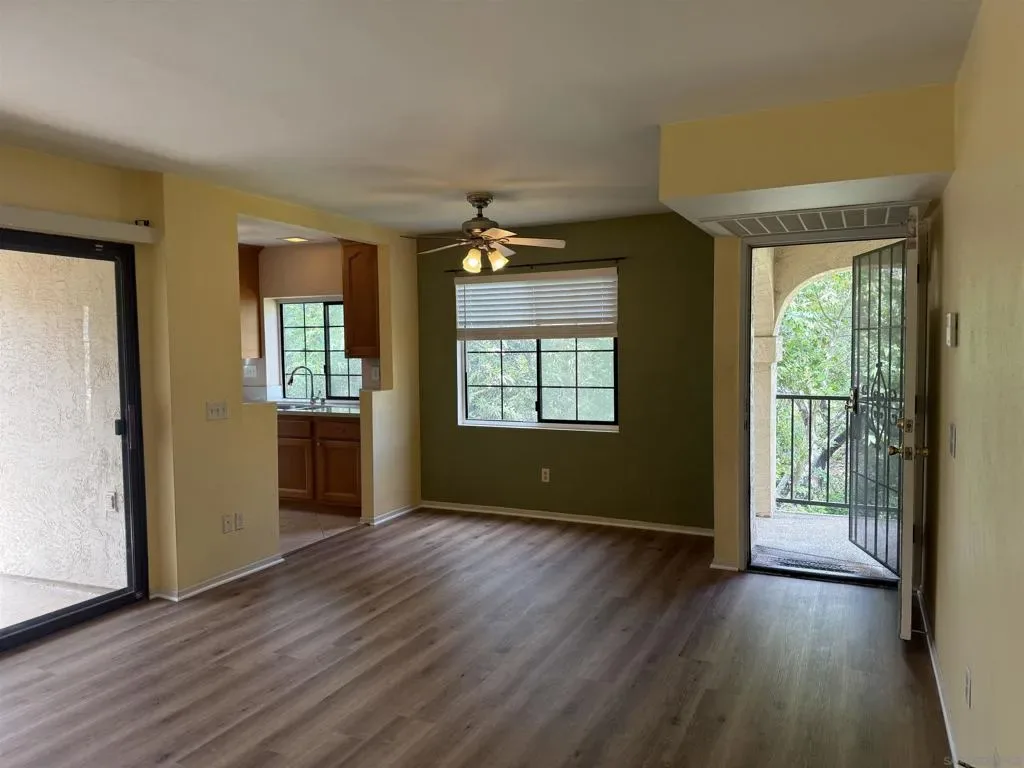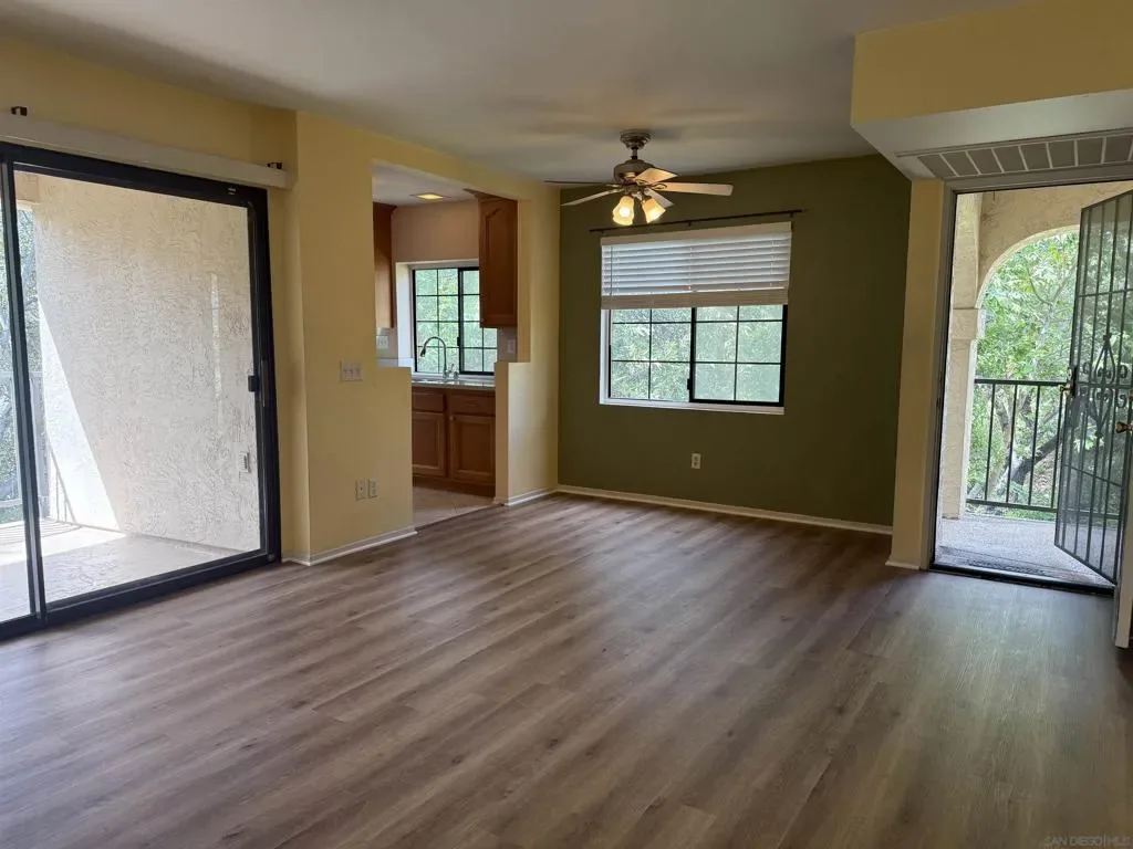 Nice upper unit in quiet location with lots of privacy and beautiful views of surrounding trees. New Microwave. Central A/C, heat. Brand new laminate flooring. Dual Master Suites. Stackable Washer/Dryer and Refrigerator included. Close to Carmel Mountain Ranch shopping and dining. Easy access to I-15 and 56. Community pool/spa. Walking distance to Morning Creek Elementary in the Poway Unified School District. Includes Water, Trash, use of Pool.