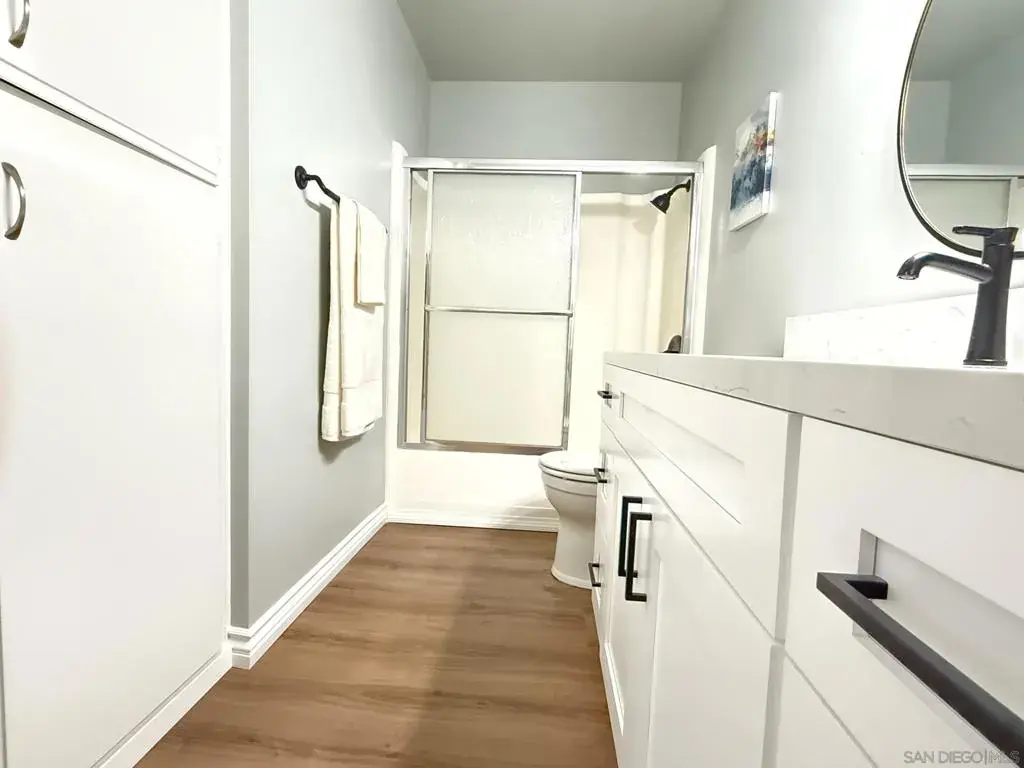 Welcome to this bright, top-floor, corner unit in the highly desirable Casa Del Cerro complex. This 2 Bedroom, 1 Bathroom condo offers 836 Square Feet of well-planned living space with a functional open layout and a clean, modern feel. A well appointed kitchen features granite countertops, upgraded tile floors, newer stainless steel appliances and a pass-through window providing easy access to a large covered porch for seamless entertaining. A large secure storage closet is also located on the balcony for added convenience. A newly remodeled bathroom features soft close white shaker cabinets. Additional features include, new carpet, new paint throughout and a forced Air A/C and heating unit. This second floor unit, provides extra privacy and great natural light with no one above. Both bedrooms are spacious, with the primary suite featuring a full walk-in closet. The second bedroom features a spacious wall-to-wall and floor-to-ceiling closet. This unit also includes 3 ceiling fans and 2 parking spaces, with water included in the HOA fee. The Casa Del Cerro community features wide open spaces with lush, well-maintained landscaping. Residents enjoy access to a variety of amenities including a sparkling pool, soothing spa, clubhouse, fitness center, and community laundry facilities. Ideally located just minutes from Lake Murray, Cowles Mountain, Mission Trails, SDSU, shopping, dining, hiking and freeway access, this condo is turnkey and ready for someone to make it their home.