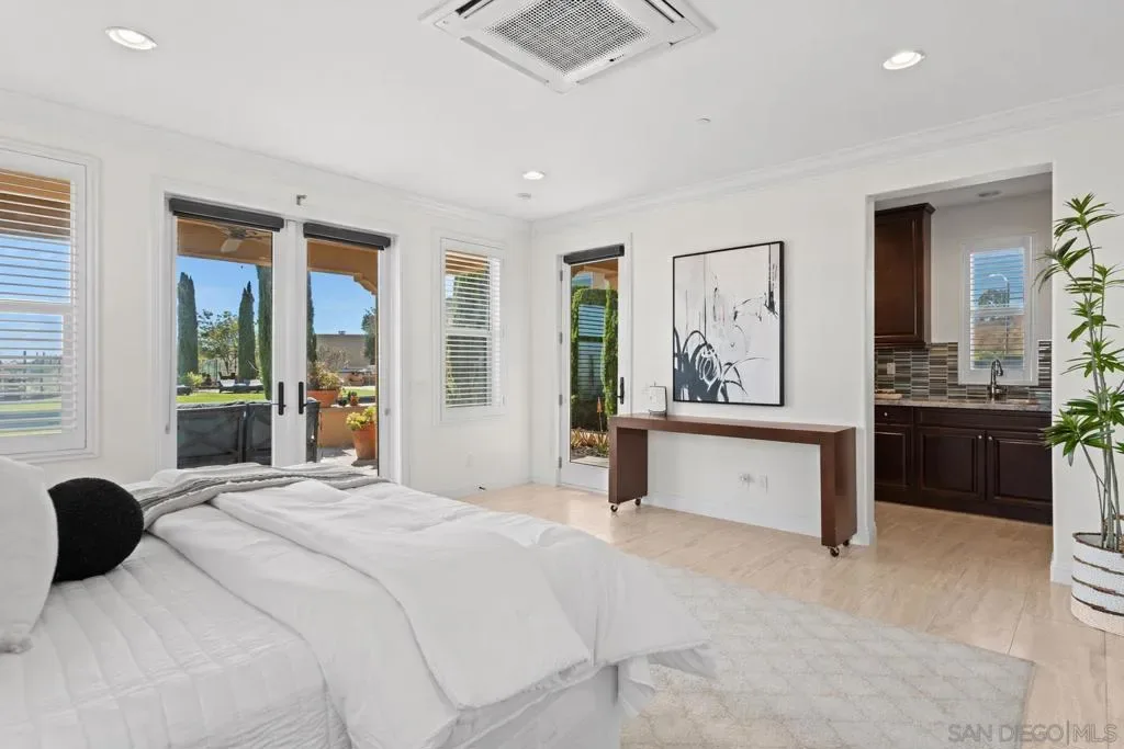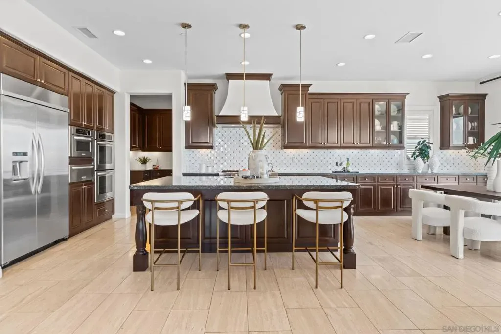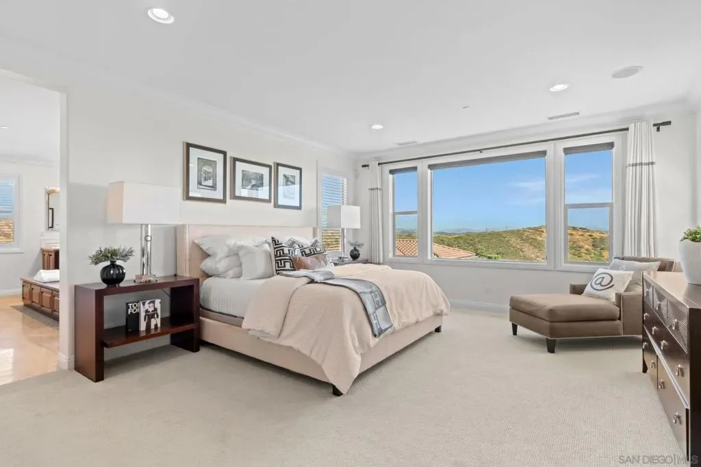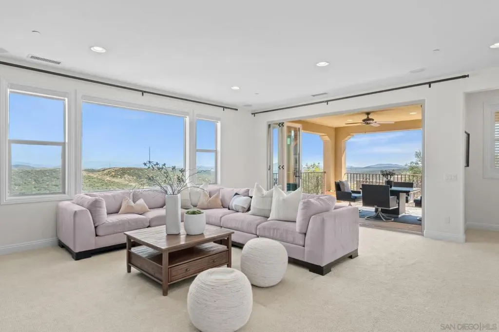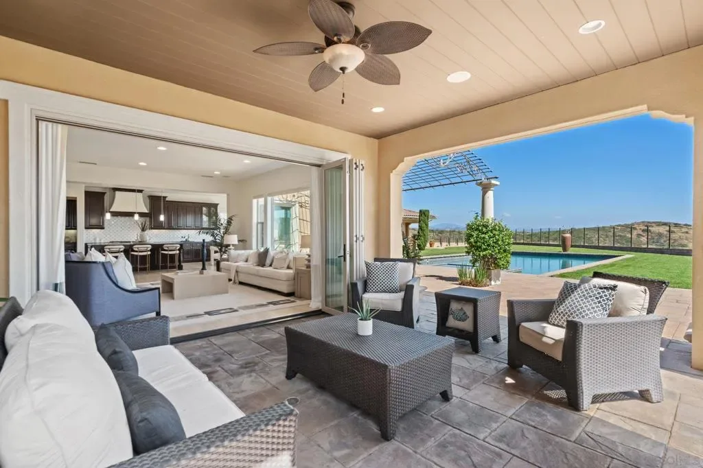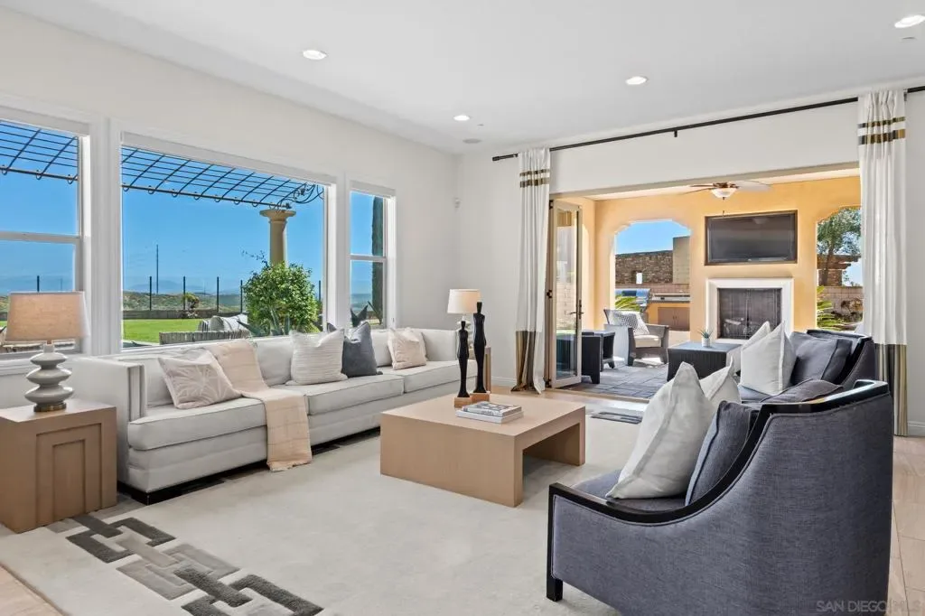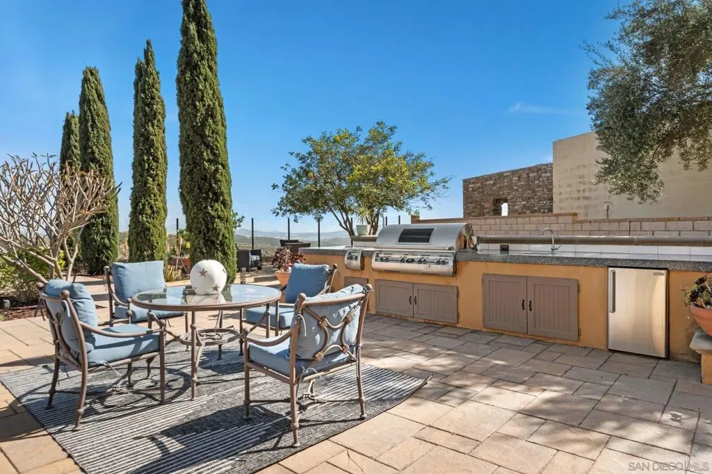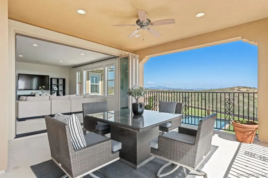 Set on a quiet cul-de-sac on one of the largest and most exceptional elevated view lots in all of Scripps Ranch, spanning over 1/2 acre, this premier Stonebridge Estates home showcases SWEEPING UNOBSTRUCTED PRESERVE VIEWS, offering a high level of privacy and openness seldom found in the area. Featuring 5 bedrooms & 4.5 baths in the main residence, plus a detached guest casita w/ full bath & an attached 3-car garage, this stunning property is designed for true resort-style living. The backyard features a beautifully designed heated pool & spa, built-in BBQ w/ dedicated gas line & refrigerator, fire pit, & a covered loggia w/ outdoor fireplace & TV, along w/ a vineyard setting & mature fruit trees. The main house offers an open floor plan w/ soaring ceilings & seamless indoor-outdoor connection, highlighted by expansive California bi-fold doors. The chef’s kitchen features an oversized island w/ counter seating, extensive cabinetry, and flows into the inviting living room, w/ a tucked-away butler’s pantry area w/ additional refrigerator & walk-in pantry. Additional highlights include a formal dining room, main-level bedroom w/ ensuite bath, office, & an upstairs loft/great room positioned to capture the views, w/ a large covered balcony. The primary suite is a private retreat, featuring a spacious bath w/ a large soaking tub, enclosed shower, and dual vanities. The casita includes a living/sleeping area, kitchenette, walk-in closet, full bath, & covered porch. This is a rare opportunity to own one of the most significant view properties in Scripps Ranch.
