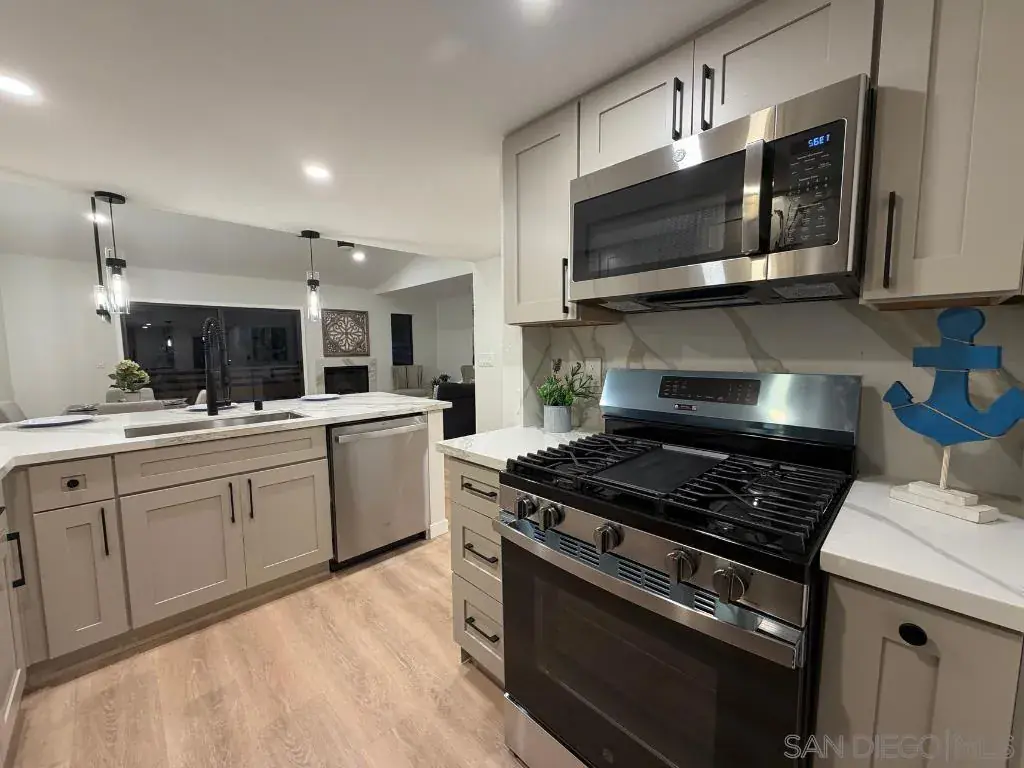 BUYER INCENTIVE BELOW! Gorgeous, move-in-ready 2-bedroom, 1-bath upper-level condo located in the heart of Scripps Ranch, offering modern finishes, resort-style amenities, and an exceptionally convenient lifestyle. This beautifully remodeled home features a bright, open-concept floor plan ideal for low-maintenance living. Recent upgrades include all-new flooring, fresh interior paint, new doors, and updated cabinetry in today’s most sought-after designer tones. The stunning kitchen is the centerpiece of the home, showcasing stainless steel appliances, quartz countertops, and a full quartz backsplash, seamlessly connecting to the living and dining areas—perfect for both everyday living and entertaining. Vaulted ceilings elevate the space, creating a light, airy feel filled with natural light. Located close to shopping, dining, Miramar Lake, freeways, and top-rated schools, this turn-key home is ideal for first-time buyers, downsizers, or investors ready to close now. The spa-inspired bathroom is finished with quartz countertops and elegant designer tile accents. Enjoy the best of indoor-outdoor living with a private balcony overlooking lush, tree-lined views—perfect for morning coffee or unwinding at the end of the day. The west-facing front door and east-facing patio with sliding glass door provide beautiful natural light throughout the day. The well-maintained community offers multiple sparkling pools, mature landscaping, and a peaceful residential atmosphere. Ideally located just minutes from I-15 freeway access, shopping, dining, and outdoor recreation, this home delivers the perfect balance of style, comfort, and convenience in one of **San Diego’s most desirable neighborhoods.