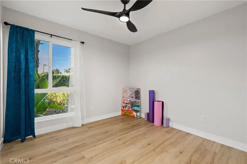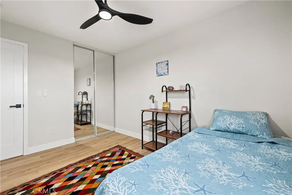 The spacious living room opens to a private patio perfect for relaxing or entertaining. Down the hallway, you’ll find a full guest bathroom with an updated vanity and modern fixtures, along with two well-sized guest bedrooms equipped with ceiling fans.