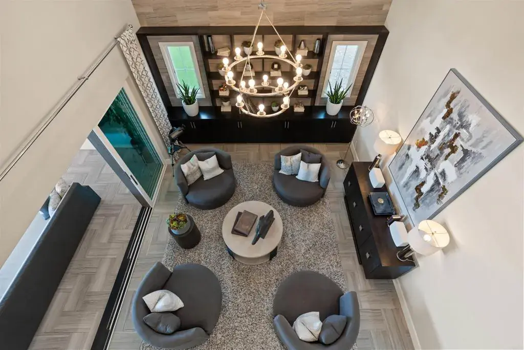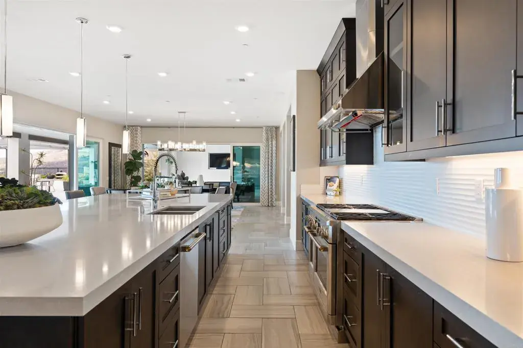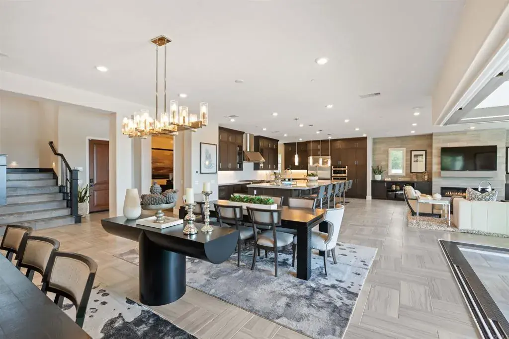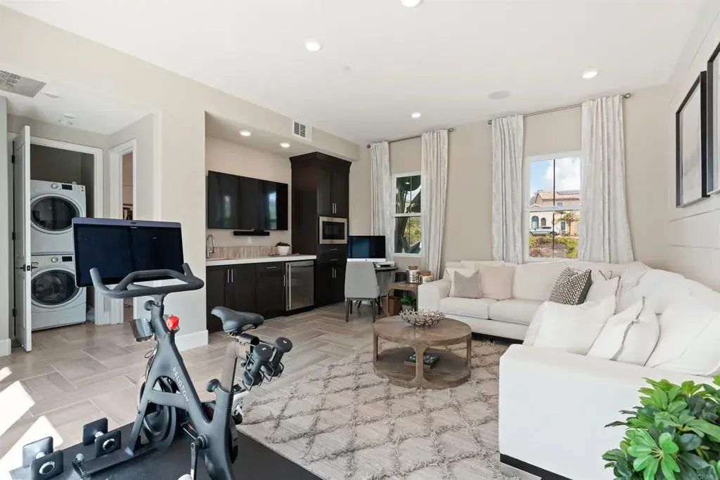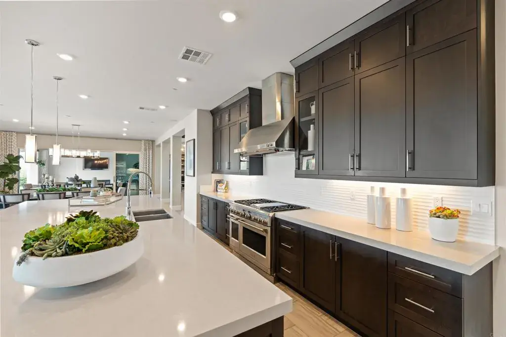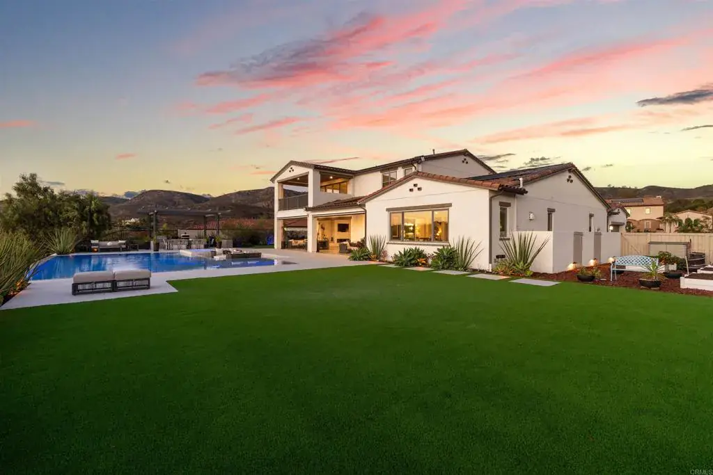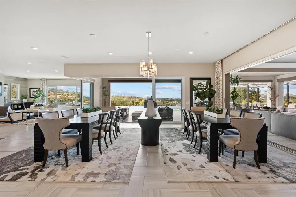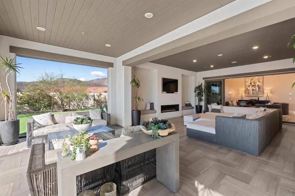 Perched above the hills in the prestigious guard-gated enclave of Sterling Heights at The Lakes above Rancho Santa Fe, this remarkable 6,063-square-foot, five-bedroom, six-bathroom estate embodies modern California luxury with breathtaking panoramic views that stretch endlessly to the horizon. As the sun sets, the sky transforms into a canvas of gold and rose tones, reflected across the striking infinity-edge pool—an unforgettable backdrop for evenings spent fireside or entertaining under the stars. This residence that served as the model home when the community was being developed, blends architectural sophistication with effortless livability. The open-concept layout flows gracefully through expansive living and dining areas designed for both grand entertaining and relaxed everyday living. The chef’s kitchen is a true showpiece, outfitted with Monogram appliances, including a six-burner dual range with griddle, built-in refrigerator and butler’s pantry, all framed by elegant designer finishes that elevate both form and function. Designed for true Southern California living, the home’s multi-panel panoramic sliding glass doors open wide to a spectacular extended indoor/outdoor living space. A spacious covered patio with fireplace becomes a seamless extension of the interior, enclosed with custom motorized Neo smart blinds that transform the area into an all-season retreat. This remarkable integration allows light, air, and ambiance to flow effortlessly between spaces, creating a lifestyle defined by openness and connection. A highlight of the floor plan is the Next Gen “Home Within a Home” suite, offering the perfect solution for multigenerational living, guest privacy, or older children seeking independence. It includes a private entrance, living area, kitchenette, laundry, bedroom, and bathroom—providing comfort and autonomy while remaining connected to the main residence. The primary suite is a tranquil haven featuring a spa-like bath with an oversized shower, freestanding soaking tub, and luxurious finishes that evoke a sense of calm and rejuvenation. The outdoor spaces rival any five-star resort. The infinity-edge pool has been completely reimagined to highlight the home’s commanding views, with solar heating, LED multicolor smart lighting, and beautifully designed lounging areas ideal for both day and night. Every detail reflects thoughtful luxury, from the Sonos full-home audio system—including the courtyard—to the epoxy-coated four-car garage with built-in cabinetry and fixed overhead storage. Set within The Lakes, one of North County’s most desirable gated communities, residents enjoy the security of a 24-hour guard gate and the serenity of scenic streets surrounded by open space and mountain vistas. Just steps from the home, miles of picturesque walking, running, and cycling trails wind through the community, offering a peaceful connection to nature and an active outdoor lifestyle. Homeowners also enjoy the proximity to The Crosby Club, featuring a championship golf course, clubhouse dining, fitness center, and racquet courts. Located within the highly acclaimed Poway Unified School District, this address offers prestige, comfort, and an unparalleled lifestyle. This is more than a home—it’s a statement of refined design, natural beauty, and effortless luxury, where every sunset feels like a personal masterpiece.