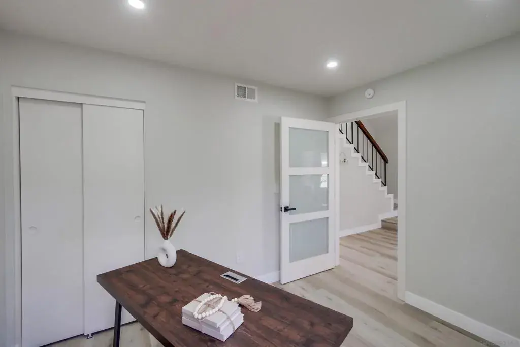 Absolutely stunning, this beautifully renovated home is a testament to luxury and modern living. From the moment you step inside, you’ll appreciate the meticulous attention to detail. Impeccably upgraded, this residence offers a lifestyle of unparalleled comfort and style, with no shared walls. The interior boasts new luxury vinyl flooring that exudes elegance and is incredibly easy to maintain. The downstairs bedroom offers convenience and solitude with its privacy glass. The primary bedroom offers a finished attic space. The kitchen and bathrooms have been masterfully remodeled, featuring solid countertops, new cabinets and mirrors. All stainless steel appliances are brand new including: refrigerator, dishwasher, microwave with fan, washer and dryer. The home is also upgraded with a new water heater. Natural light floods the space, courtesy of new dual pane windows and tempered glass sliding doors that lead to the meticulously landscaped backyard oasis. Every inch of this home has been thoughtfully designed and accentuated by new fixtures, LED recessed lights and ceiling fans. Step outside to discover a custom landscaped paradise with artificial turf, and concrete step stones, ensuring a lush, green space year-round. Additionally, this home offers a carport, that can be converted in to a garage, with 3 parking spaces and an oversized storage closet! Don’t miss the opportunity to make this extraordinary residence your own. It’s more than a home; it’s a lifestyle, and it’s waiting for you to embrace it fully.