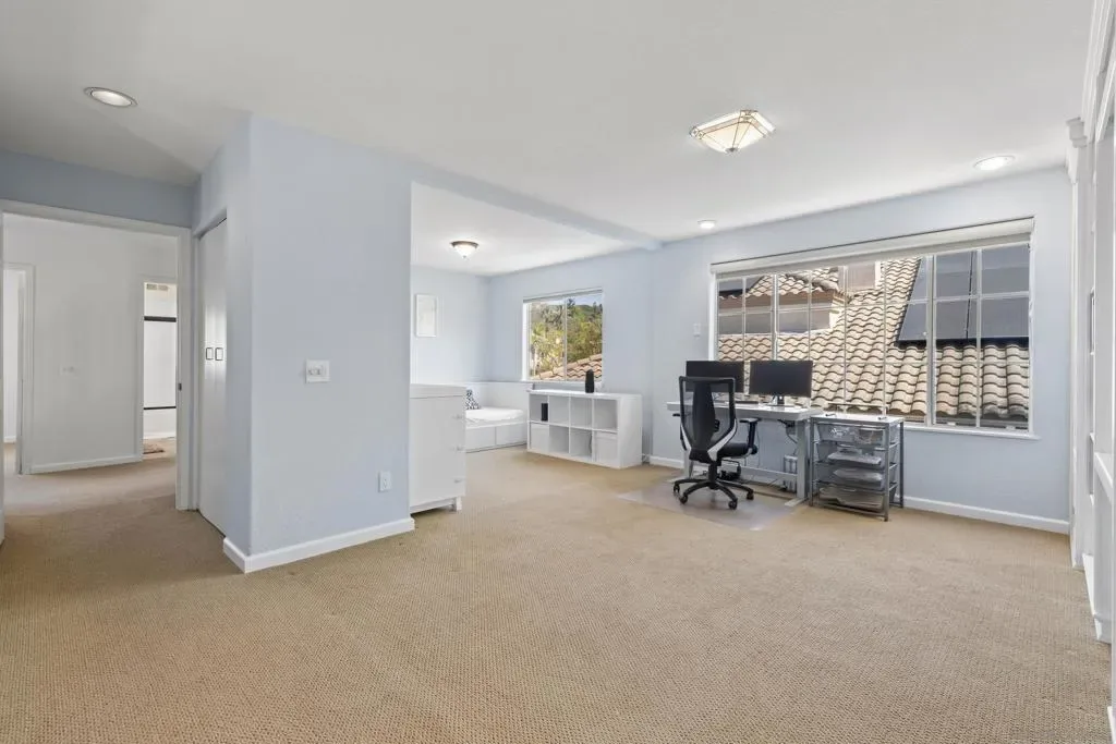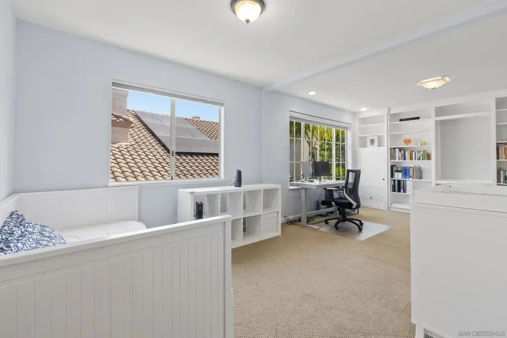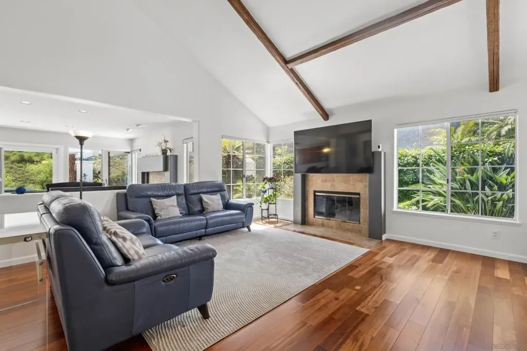 Beautiful 4-bedroom, 2.5-bath home with a huge loft (not included in sq ft), located in the heart of Tierrasanta. SOLAR, 3-car garage, and sweeping canyon views. Exceptional indoor-outdoor living, this move-in-ready residence offers a spacious open-concept floor plan designed for both comfort and entertaining. The oversized kitchen features abundant cabinet space, a newer refrigerator, and a charming breakfast nook with peaceful canyon views. Rich cherry wood flooring enhances the downstairs living areas, while two cozy fireplaces create a warm and inviting atmosphere. Upstairs, the grand primary suite captures views. Step outside to your private backyard retreat with a spa/waterfall overlooking the canyon, perfect for entertaining or unwinding in a tranquil setting. Conveniently located near top-rated schools, village-style shopping, and easy access to the 52 and I-15, this exceptional Tierrasanta home offers the best of location, lifestyle, and views.
