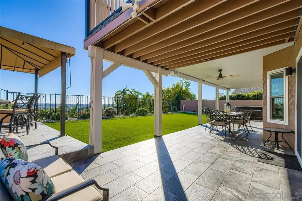 Stunning Tierrasanta Home! A residence shaped by more than $320,000 in carefully selected, custom enhancements. This thoughtfully upgraded four-bedroom, two-and-a-half-bath residence blends timeless design with modern comfort, offering exceptional indoor-outdoor living and sweeping views you truly have to see to appreciate. The main level is anchored by stone tile flooring throughout and enhanced by vaulted ceilings, recessed lighting, and all new interior doors, creating a bright and refined first impression. The living room features custom built-in cabinetry while the family room includes a bespoke bench seating area, delivering both architectural interest and functionality. A redesigned kitchen serves as the heart of the home, showcasing stainless steel appliances, a brand-new microwave, pull-out pantry shelving, and a striking backsplash that extends seamlessly to the ceiling. Upstairs, all bedrooms are outfitted with ceiling fans with integrated lighting and new blinds. The primary suite offers a spa-inspired retreat with a remodeled bath featuring a spacious custom shower. A beautifully finished secondary bath includes a cast iron tub and custom detailing. The backyard is a true entertainer’s sanctuary. Designed for year around enjoyment for both relaxation and gatherings, it features a custom built-in bar and grill, new tile outdoor flooring, an Alumawood patio cover, outdoor fan, integrated TV (included), and a premium Govee exterior lighting system with app-controlled settings. Lush landscaping includes peach, Meyer lemon, plum, and orange trees, complemented by elephant palm trees and palms in the front yard. New drainage and gutter systems complete the exterior upgrades. With “views for days,” high-quality improvements throughout, and a layout designed for both everyday living and elevated entertaining, this home presents a rare opportunity to own a truly turn-key property with exceptional lifestyle appeal. Located in the heart of Tierrasanta, this home offers top-rated schools, nearby parks, and convenient access to shopping and dining—a rare opportunity in a highly sought-after neighborhood. Don’t miss out on this exceptional home
