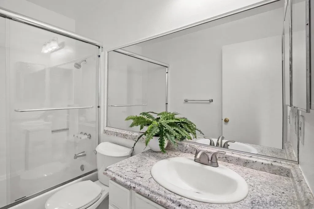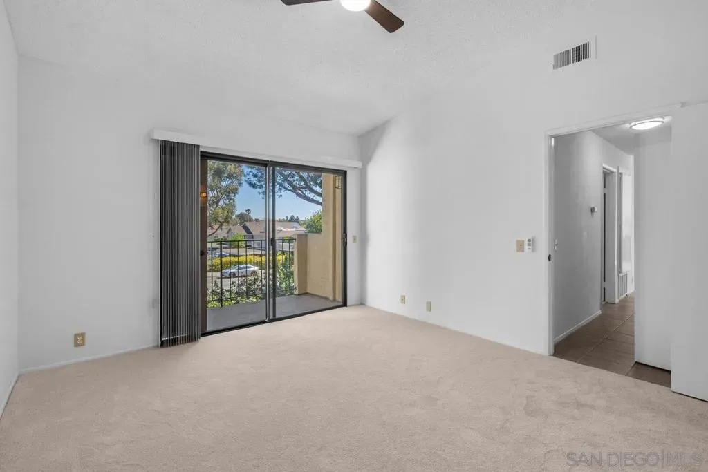 Move-in Ready Top-Floor End Unit in Las Palmas! Enjoy elevated living in this sun-drenched top-floor end unit featuring brand-new paint and designer carpeting throughout. This home boasts an open-concept floor plan with soaring vaulted ceilings, a cozy fireplace, and two private balconies perfect for morning coffee. The spacious primary suite includes a generous walk-in closet. Parking is a breeze with both a private one-car garage (offering ample storage) and a dedicated covered carport. Located in the meticulously maintained Las Palmas community, you’ll have access to resort-style amenities including heated pools, spas, and lush landscaping. Perfectly situated within walking distance to Rose Canyon hiking trails and Doyle Recreation Center, with effortless access to UCSD, UTC Mall, and major freeways (I-5, 805, and 52). ***