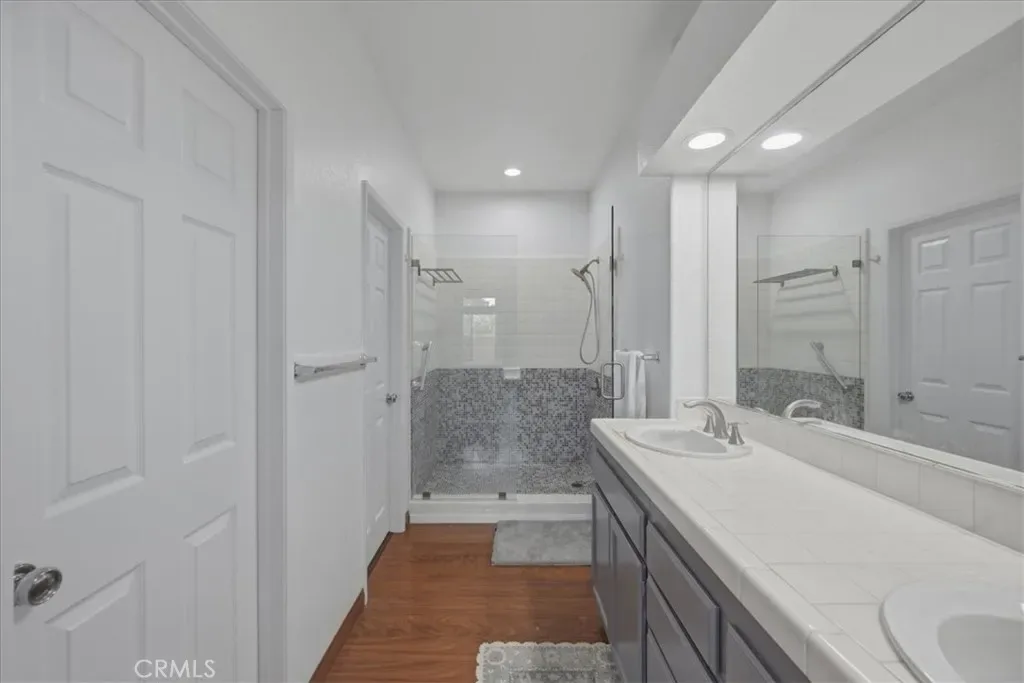 The primary suite is spacious and inviting, complete with a walk-in closet and a beautifully remodeled en-suite bath with a sleek, updated shower. The second bedroom offers flexibility for guests, a home office, or whatever fits your lifestyle.