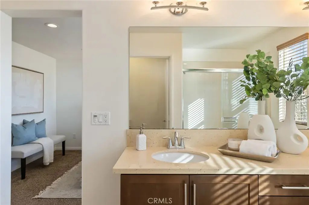 This rarely available 4-bedroom townhome is tucked into San Dimas’ highly sought-after Village Walk community. Built in 2013 and thoughtfully updated, this house-like home features 4 bedrooms, 3.5 baths, and spans 1,758 square feet of living space. Spacious and bright, modern upgrades include recessed lighting, dual-pane windows, quartz countertops, newer appliances and systems, a newer water heater, and smart-home features such as a Ring doorbell and Ecobee thermostat. A ground-level guest bedroom with an en-suite bath is ideal for guests, a home office, or flexible living. The main level features a bright, open layout where the kitchen, dining area, and family room flow seamlessly together, along with a convenient half bath well-suited for everyday living and entertaining. There’s also a bonus nook designed for a study or workspace. Upstairs, the primary suite provides a peaceful retreat with a walk-in closet and en-suite bath, alongside light-filled bedrooms and an additional full bath. The home is complete with in-unit laundry and an attached two-car garage with interior access. Centrally located and within walking distance to shops, cafes, parks, and restaurants; near downtown San Dimas, major freeways, local colleges, Bonelli Park, Puddingstone Lake, and within the award-winning Bonita Unified School District, this move-in-ready home offers modern living in one of San Dimas’ most desirable neighborhoods. Welcome home!