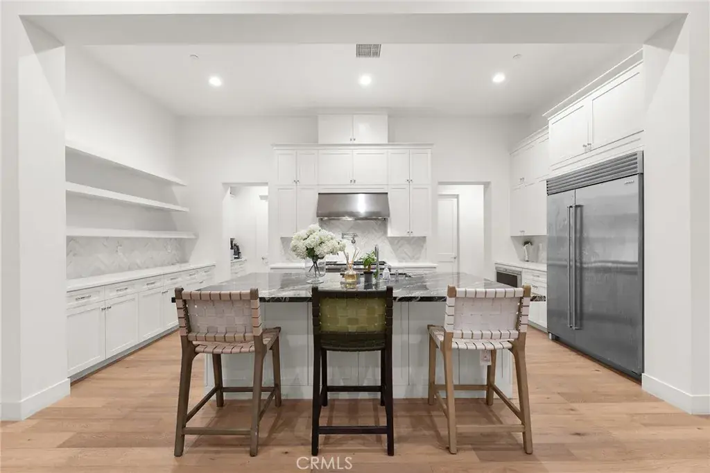 The gourmet kitchen is a true showpiece, featuring a full suite of Wolf professional-grade appliances, a Sub-Zero refrigerator, custom cabinetry, stone countertops, and an oversized center island. Thoughtfully designed for both elegance and functionality, the home is equipped with both a Western-style main kitchen and a separate Chinese (spice) kitchen, offering exceptional versatility while maintaining the refined aesthetic of the main living areas.