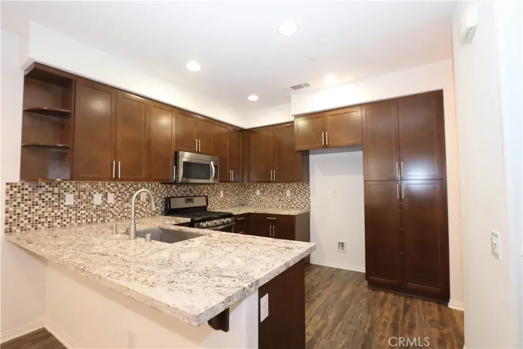 Beautiful townhome located at Village Walk in Downtown San Dimas. Built in 2013. Features include 3 bedrooms and 2 1/2 baths. Living room open to kitchen and dining area. Living room has a built-in custom entertainment center. Large kitchen with granite countertops, stainless steel appliances and pantry. Double vanity sinks in master and upstairs hall bathroom. Master bedroom features a walk-in closet with custom built cabinets and additional built-in cabinetry/entertainment center in the room. Laminate flooring downstairs and carpet upstairs. Conveniently located upstairs laundry room with additional cabinetry for storage. Recessed lighting throughout. 2-car attached garage. Plenty of guest parking available. Highly rated San Dimas schools. Close to Park, Schools, Shopping, Restaurants & Transportation. Do not miss out!
