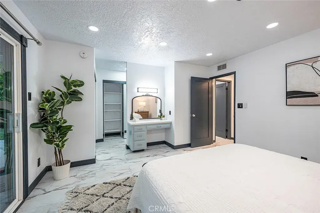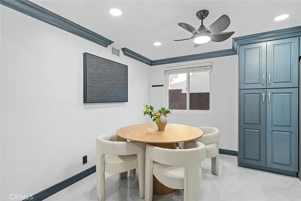 A spacious living room with recessed lighting and large windows opens to the dining area and backyard—making this home ideal for entertaining or quiet evenings in. The five bedrooms offer flexibility for guests, a home office, or multigenerational living. The primary suite includes ample closet space and a private bathroom with clean, modern lines.