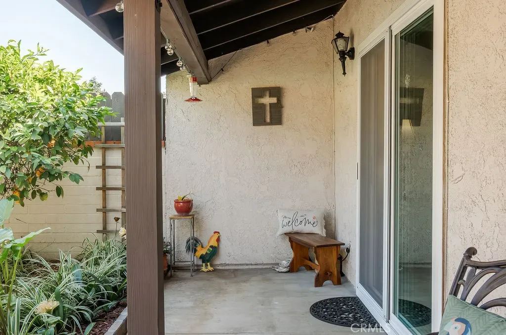 Nestled in the highly sought after Montecito Village community of San Dimas, this beautifully updated Planned Unit Development (PUD) is surrounded by scenic canyons, mature shade trees and lush landscaping. The home features two spacious bedrooms and a bedroom used as a dedicated home office, two bathrooms and an inviting living and dining room. Natural light fills the interior, enhanced by dual-pane windows and dual-pane sliding glass doors that create a bright, energy-efficient living space. The living room, complete with a cozy fireplace, opens seamlessly to the home office/bedroom-ideal for both relaxation and productivity. The remodeled kitchen offers a perfect blend of style and functionality, featuring updated finishes and a large convenient pantry for additional storage. Enjoy peaceful outdoor living from the welcoming front porch with serene canyon views, or unwind on the private backyard patio with pavers, surrounded by vibrant plants and flowers. With its thoughtful layout, modern upgrades, and effortless indoor-outdoor flow, this home offers an exceptional combination of comfort, style and natural beauty. Take a dip in the HOA community pool in the warm summer months. Conveniently located close to restaurants, shopping and Freeway access.