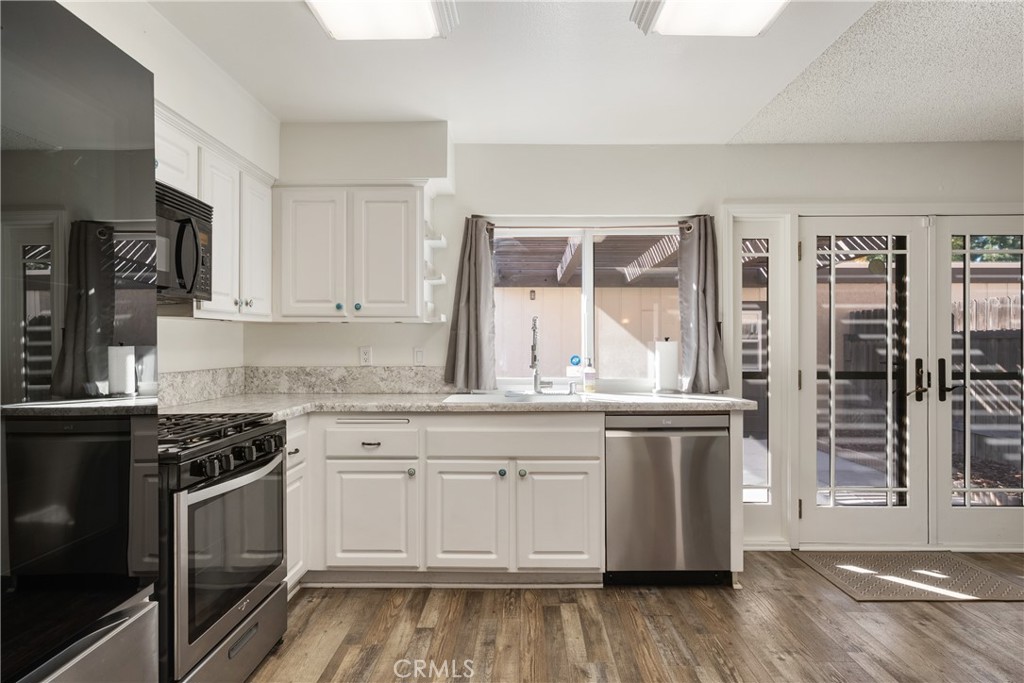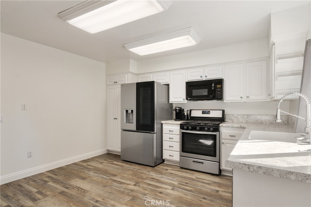 Beautiful, large, and truly move-in ready townhome located in the highly sought-after Tiburon community in San Dimas. This coveted end-unit location offers increased privacy and an abundance of natural light, creating a bright and welcoming atmosphere throughout the home. The interior has been freshly painted and features newer luxury vinyl plank flooring, delivering a clean, modern look that is both stylish and durable. The living area flows seamlessly into the dining space and kitchen, which offers ample cabinetry, generous counter space, and all stainless-steel appliances included. A brand-new high-end refrigerator completes the kitchen, making it ready for immediate use. A French door from the kitchen opens to a private outdoor patio and is complemented by a new security screen door, creating a perfect spot to enjoy morning coffee or unwind in the evening. The patio is ideally positioned between the condo and the garage. Upstairs bedrooms are well sized and complemented by excellent storage, including large closets and a built walk-in closet in the primary suite. The home has been well maintained with key system upgrades already completed, including central heating and air and a tankless water heater, both approximately three years old. Additional improvements include copper piping in the garage and a new heat-resistant roof coating completed in 2025, providing long-term efficiency and peace of mind. The oversized garage offers laundry hookups, built-in shelving, and plenty of space for parking and storage. The Tiburon community is known for its resort-style amenities and beautifully maintained grounds. Residents enjoy access to two sparkling swimming pools, tennis courts, and a park with open green space and a playground, creating a true neighborhood feel. The location is ideal for outdoor enthusiasts, with Bonelli Regional Park and Puddingstone Lake just minutes away, offering hiking, biking, boating, and scenic recreation. Conveniently close to shopping, dining, and major commuter routes, this end-unit townhome delivers an exceptional combination of space, upgrades, community amenities, and location.