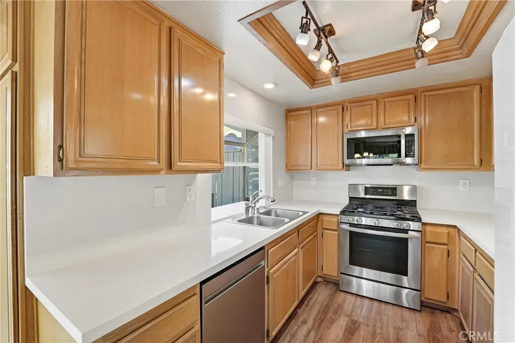 Fantastic opportunity to lease a spacious home in the highly desirable “Village at San Dimas” community. As you enter this beautiful townhome, you’re welcomed by a step-down living room on the left, featuring a cozy fireplace and elegant mantle. Just beyond is the dining room, highlighted by a stunning crystal chandelier. The updated kitchen sits behind the dining area and showcases warm-toned cabinetry, stainless steel appliances and sleek quartz countertops. The kitchen opens seamlessly into the family room, which also features a fireplace and a charming breakfast nook. Sliding doors lead from the family room to a private, enclosed backyard complete with a patio and built-in BBQ—perfect for entertaining! The main floor also includes a bedroom and a fully remodeled bathroom with custom tile work, along with warm hardwood flooring throughout. Upstairs, you’ll find a versatile loft space and a large primary suite with mirrored wardrobe doors and a beautifully remodeled ensuite bathroom featuring dual vanities and custom tile finishes. Two additional spacious bedrooms and plush carpeting complete the upper level. The community offers access to two pools and is conveniently located near shopping, retail and all major freeways. Excellent schools add to the appeal. Come experience comfortable and stylish living in this beautiful home today!