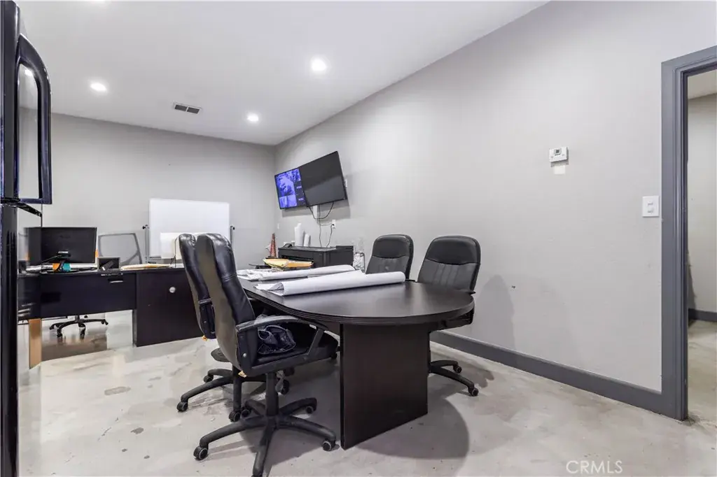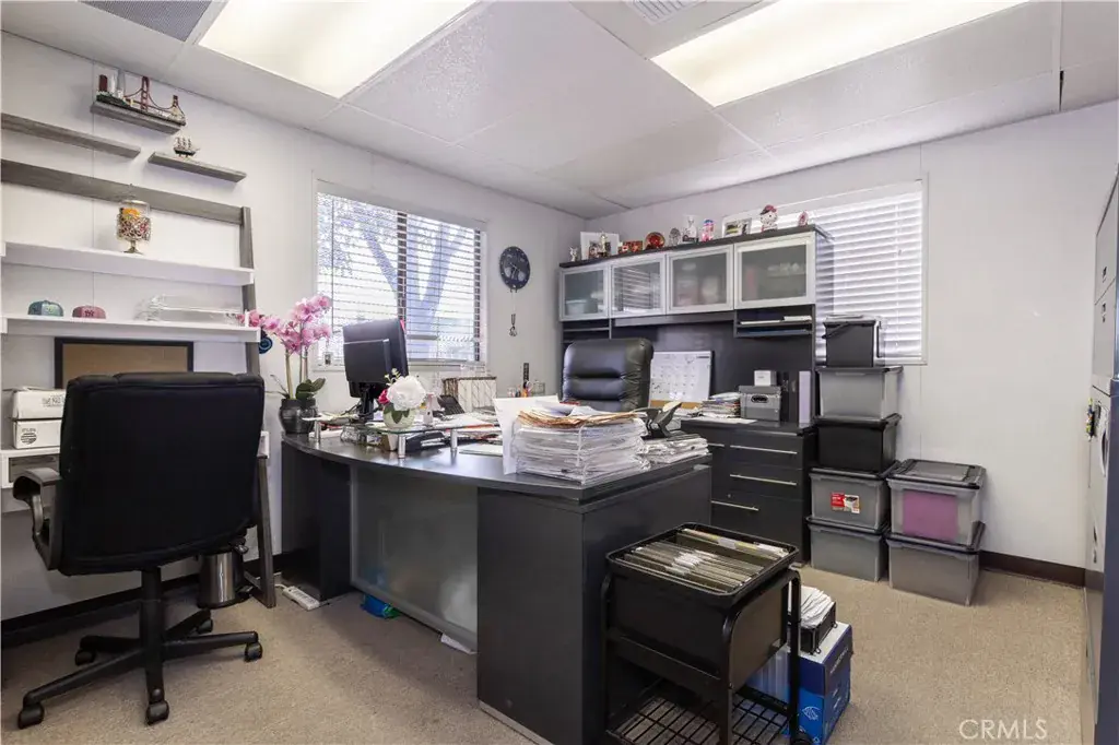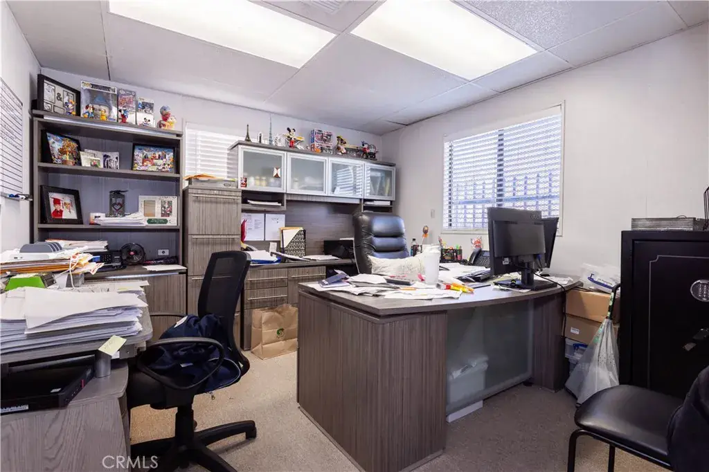 The property features two separate office buildings, each offering multiple private office spaces suitable for administrative or operational needs. The rear office includes an attached warehouse, providing convenient access for storage or light manufacturing.