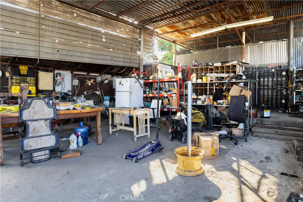 Additional features include a spacious steel-covered patio area, perfect for shaded workspace or outdoor equipment storage. The yard layout allows for easy truck access and flexible use of outdoor space.