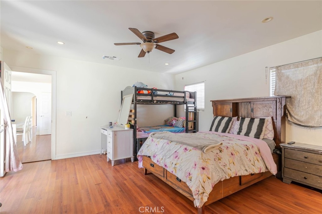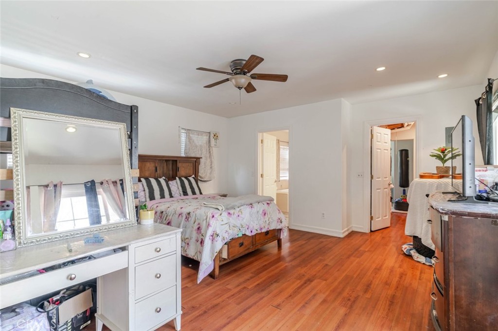The main home features warm wood-tone flooring, recessed lighting, and ceiling fans throughout, creating a bright and inviting atmosphere. Thoughtfully designed living spaces provide both comfort and flexibility, ideal for everyday living and entertaining.