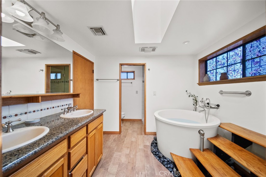 Upstairs, the private primary suite serves as a peaceful retreat, offering beautiful mountain views, fireplace, private patio large enough for a table and chairs—perfect for enjoying your morning coffee while taking in the scenery. The suite also includes a walk-in closet and a deep soaking tub, creating a relaxing spa-like space to unwind at the end of the day.