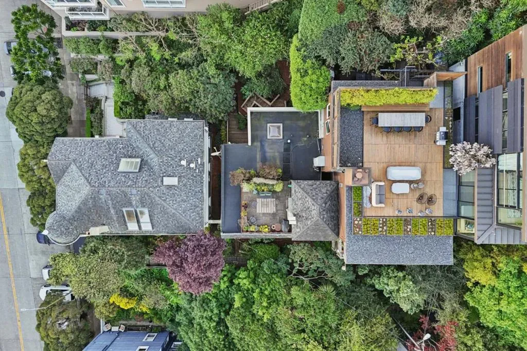 Perched near the crest of Russian Hill, 15-17 Macondray Lane offers captivating northeast views spanning North Beach, Telegraph Hill, and the San Francisco Bay, with Alcatraz and Angel Island as focal points. From the garden roof deck, enjoy a dramatic panorama stretching from the Bay Bridge to the Golden Gate. Set along Macondray Lane – an intimate, pedestrian-only enclave lush with mature landscaping and a tranquil waterfall – the home feels like a private retreat just moments above the energy of North Beach and Columbus Avenue. Inside, richly detailed wood paneling, tall windows, and a warm, curated palette create an atmosphere of understated elegance. The living room anchors the home with inviting scale and light, while adjoining spaces offer flexibility for dining, work, or relaxation. Bedrooms are peaceful and filled with soft natural light, oriented toward greenery. A rare offering combining iconic views, architectural character, and a uniquely serene setting in one of San Franciscos most sought-after neighborhoods. Own a piece of history!