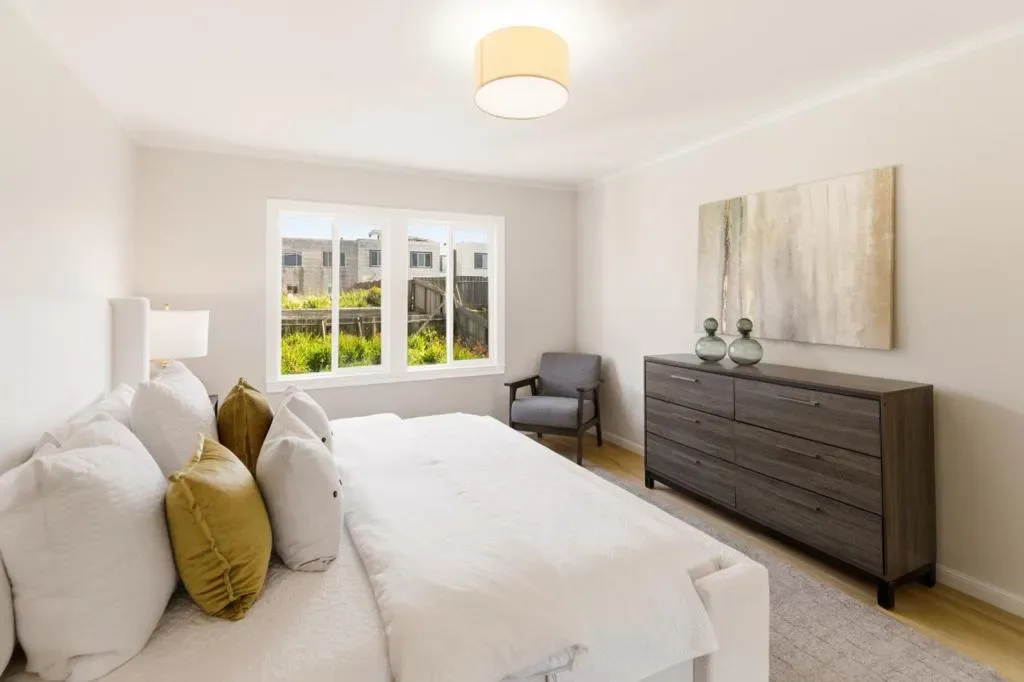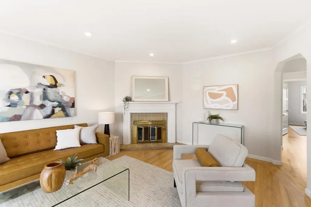 Welcome to 2126 43rd Avenue, a charming 2-bd, 1-ba home just minutes from Ocean Beach in San Francisco. The spacious living room ft. a cozy fireplace accented by new recessed lighting and hardwood floors throughout, creating a warm, inviting space for family & entertaining. The eat-in kitchen has been thoughtfully updated over the years w/ modern cabinets, granite countertops, tile backsplash, brand-new exhaust hood, refrigerator, and pull-down faucet, offering both style & functionality. The fully remodeled bathroom showcases designer tile floors & shower walls, sliding glass door, vanity w/ sink, new mirror & light, and built-in linen shelves. Both bedrooms are generously sized w/ ample closet space, while a finished bonus room plus additional full bath w/ stall shower provides versatile space for a home office, guest area, or recreation. Additional highlights include new light fixtures, brand-new water heater, 1-car garage, and a large landscaped lot with fresh mulch, perfect for outdoor living or gardening. Ideally situated near Ocean Beach and Great Highway, with a short drive to Skyline connecting to major routes, this home blends modern updates, flexible living space, and a coveted coastal location.