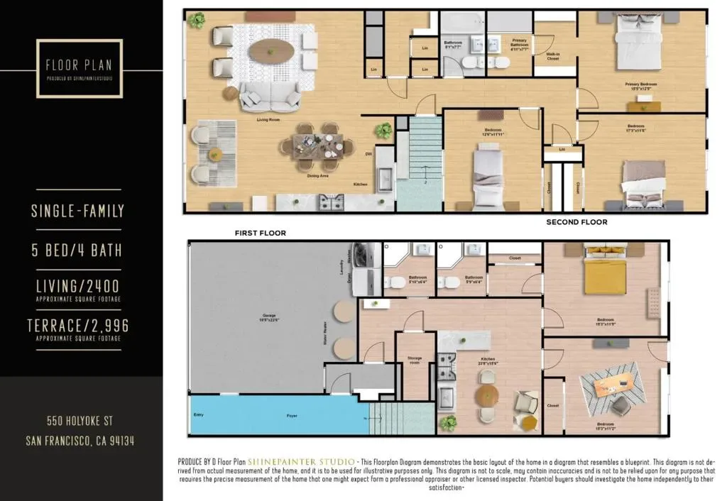 Experience modern luxury in San Franciscos sunny Portola District. This newly remodeled home offers exceptional space, flexibility, and comfortable city living. The upper level features 3 bedrooms and 2 bathrooms across approximately 1,550 sq ft of bright, thoughtfully designed living space. The lower level offers an additional 2 bedrooms and 2 bathrooms with approximately 760 sq ft, providing excellent potential for extended family, guests, or additional living flexibility. The home also includes an inviting open-concept layout and a low-maintenance backyard patio, perfect for relaxing or entertaining. Ideally located near McLaren Park and Palega Recreation Center, and close to top schools including Cornerstone Academy. Enjoy convenient access to San Bruno Avenues vibrant dining and shopping, public transit, and major commuter routes including Highways 101 and 280. Downtown San Francisco and SFO Airport are just a short drive away. This beautifully updated Portola home offers the perfect combination of modern comfort, versatile living space, and an unbeatable location.