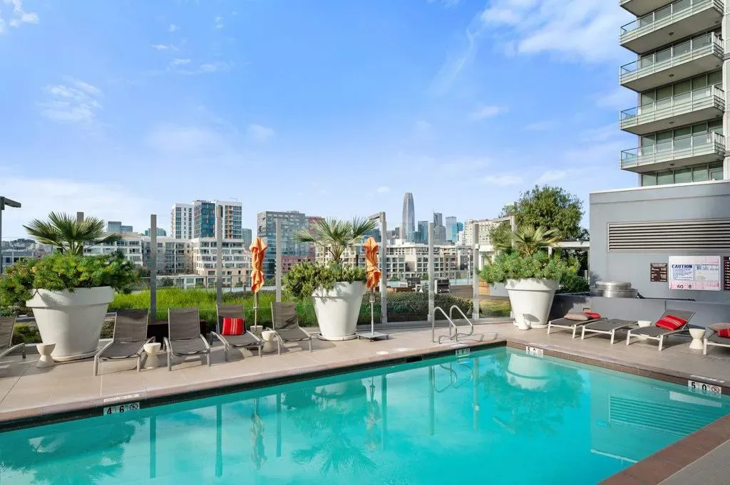 Elevated living in San Francisco’s vibrant Mission Bay! The Arden, where modern luxury meets resort-style amenities, stunning waterfront location. 24hr attended lobby provides comfort and security, enjoy boutique-inspired lounges, expansive rooftop retreat, 75-foot lap pool, lush landscaped gardens, breathtaking views of McCovey Cove and the city skyline. The community offers BBQ grilling stations, outdoor dining areas, a social lounge with billiards, and a fully equipped fitness center tailored to an active lifestyle. Just outside your door, tree-lined streets lead to Mission Bay parks, convenient transit options including Caltrain and Muni, premier shopping, and two world-class stadiums hosting top-tier sports and entertainment events. This northwest-facing 2bd 2ba residence offers a thoughtfully designed open floor plan with downtown and cove views. A spacious private patio seamlessly extends the living space, creating an ideal setting for indoor-outdoor living. The gourmet kitchen is a chef’s dream, appointed with Caesarstone countertops, Grohe fixtures, and premium Thermador appliances. Interior upgrades include recessed lighting throughout, custom closet systems, handcrafted window coverings, and elegant wood floors, adding warmth & sophistication to this exceptional home.