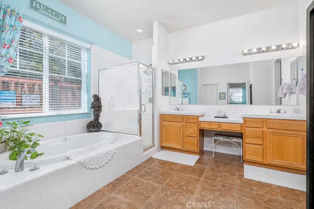 The luxurious primary suite includes dual walk-in closets, a soaking tub, walk-in shower, and double vanities. Additional highlights include leased solar, RV parking, indoor laundry, and a 3-car garage.