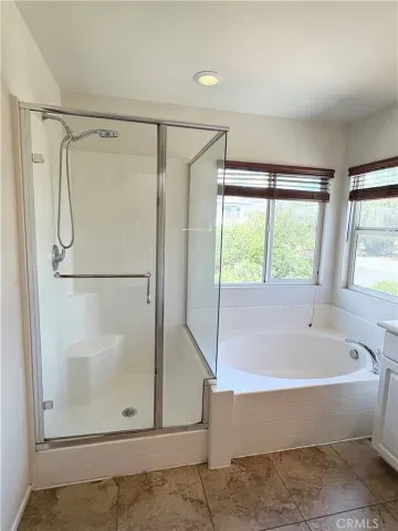 This serene primary suite showcases a spacious dressing area, dual vanities, a tub, a SEPARATE glass-enclosed shower, and an expansive walk-in closet. A versatile EXPANSIVE LOFT with custom built-in workstation and cabinetry offers the ideal flex space for a private office, library, or lounge.