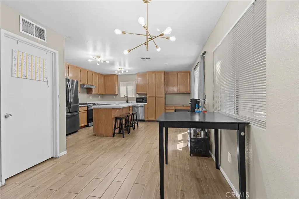 Back on the market at no fault of seller! Step into this charming 2-story residence situated within a secure community in San Jacinto! Featuring 4 bedrooms, 2.5 bathrooms, and 1,985 square feet of living area, this property is ideal for families of any size. As you enter, you’ll be struck by the home’s numerous enhancements, such as contemporary wood-look tile flooring, soft, neutral-colored walls, and unique custom touches. The expansive kitchen offers ample counter space and a generous island, making it perfect for cooking or hosting gatherings. The nearby dining room and living area create a welcoming atmosphere for both family events and quiet family time. Upstairs, To the right is a spacious primary bedroom equipped with walk-in closet, private bathroom, double sink and a separate walk-in shower and soaking tub. On the left side of the stairs you will be directed to a bathroom with a double sink and shower/tub combo. Down the hall will be 3 bedrooms. The the first bedroom to the left is spacious and has an ample size closet. Down the hall and second room to the left has a walk-in closet. Down the hallway on the right also has a walk-in closet. The backyard has a covered patio for private and plenty of space to bbq and host. This is a unique gated community and also offers a park, playground, bbq area and basketball court. The outdoor amenities is perfect for anyone in the family to enjoy and utilize. With its excellent location and stylish upgrades, this home is an opportunity you don’t want to pass up.