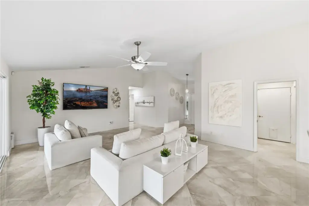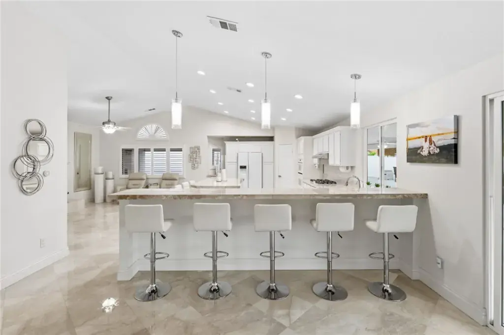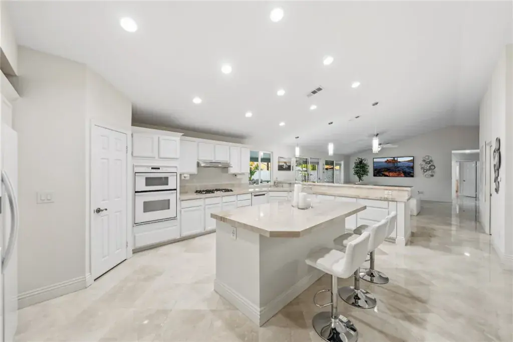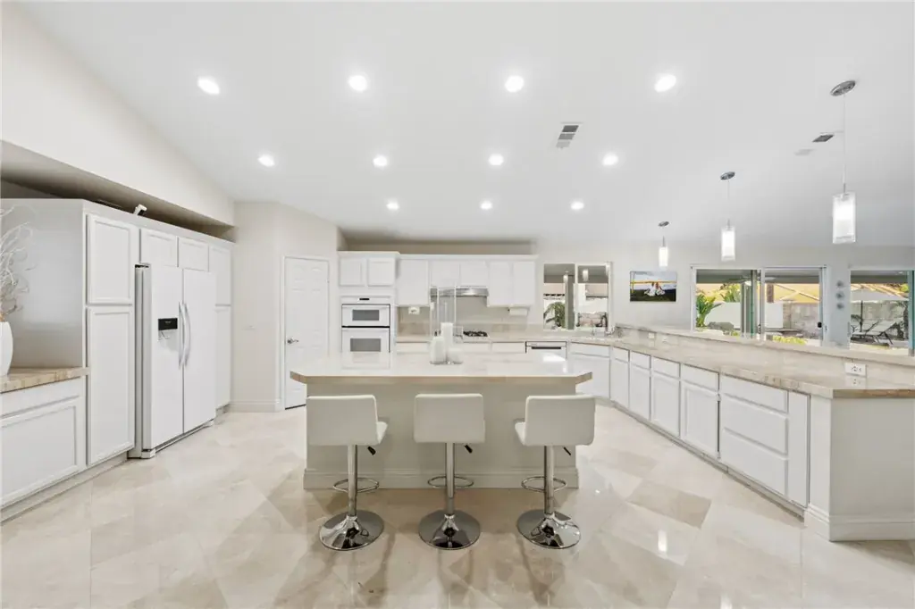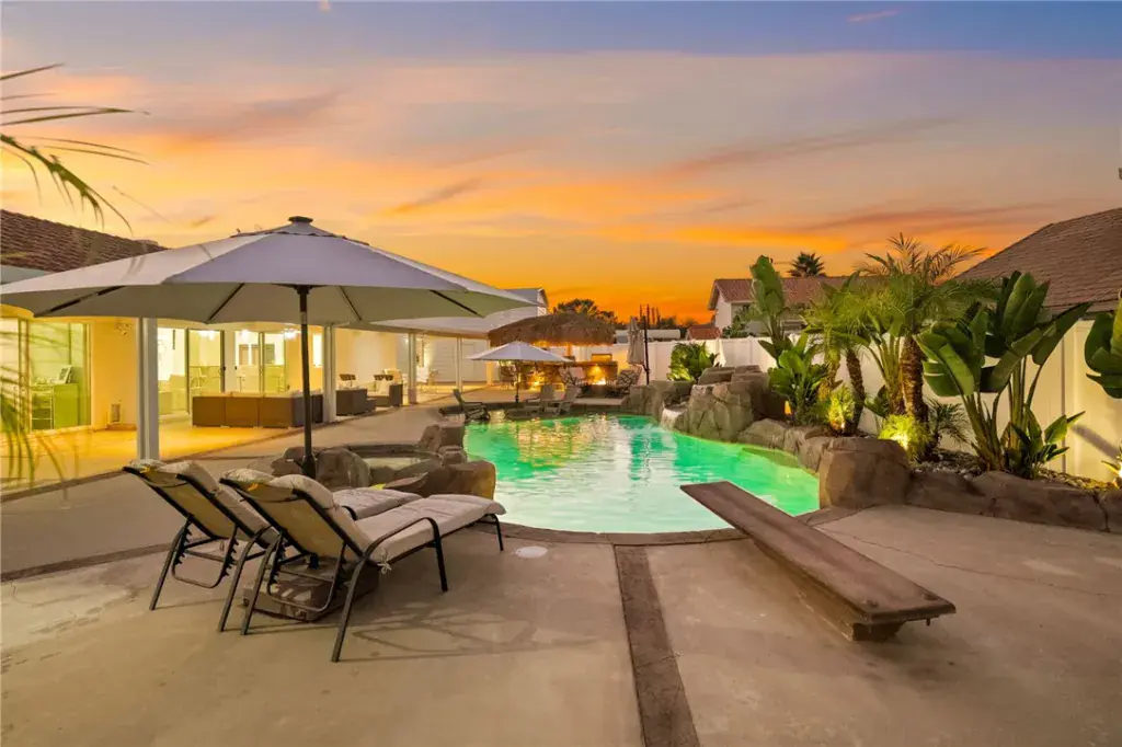 Welcome to this stunning single-story custom floorplan home that perfectly blends luxury, functionality, and style. Situated on a large desirable corner lot, this 4-bedroom, 2.5-bathroom home offers an open and elegant floor plan with marble flooring throughout and meticulous attention to detail. The gourmet kitchen features marble countertops, a new dishwasher, R/O system, walk-in pantry, and abundant cabinetry—ideal for the home chef. The spacious primary suite boasts a marble walk-in shower, separate soaking tub, and a serene retreat-like atmosphere. Enjoy year-round comfort and efficiency with newer dual-pane windows, a new roof, which was installed 3 years ago, and solar. Step outside to your backyard oasis complete with a sparkling pool, relaxing spa, Alumawood patio cover, and a cozy firepit—perfect for entertaining. The property also includes a 3-car garage with vinyl tile flooring and an impressive 25×60 RV garage with 220-volt power, ideal for RVs, boats, or a workshop. Additional highlights include indoor laundry, custom steel gates, underlit concrete steps leading to your front foyer, a gas fireplace in the family room, and a 4th bedroom with a private entrance—perfect for guests or a home office. This highly upgraded home offers the ultimate in comfort, quality, and convenience, this home is a true entertainer’s dream with room for all your toys! And low taxes and no HOA!!! Do not miss this one in a million home today!
