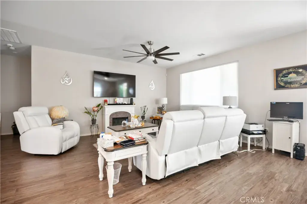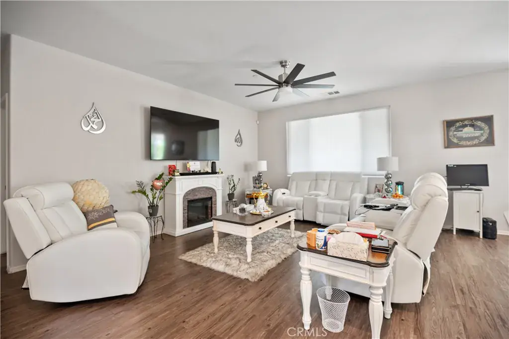 Step into this stunning single-story ranch-style home in San Jacinto, featuring paid-off solar, RV parking, and no HOA! Built in 2017, this 1,935 sq. ft. residence offers three spacious bedrooms, two full bathrooms, and an open-concept floor plan designed for modern living. The gourmet kitchen boasts granite countertops, white shaker cabinets, a large island with sink, and a walk-in pantry, perfect for meal prep and entertaining. Enjoy luxury vinyl plank flooring, inside laundry, and ample storage throughout. Outside, the low-maintenance backyard is beautifully landscaped, complete with a gas hookup for a BBQ, and street-access RV parking deal for all your outdoor toys. Nestled in a prime location near parks and amenities, this turnkey home is ready for its next owner.