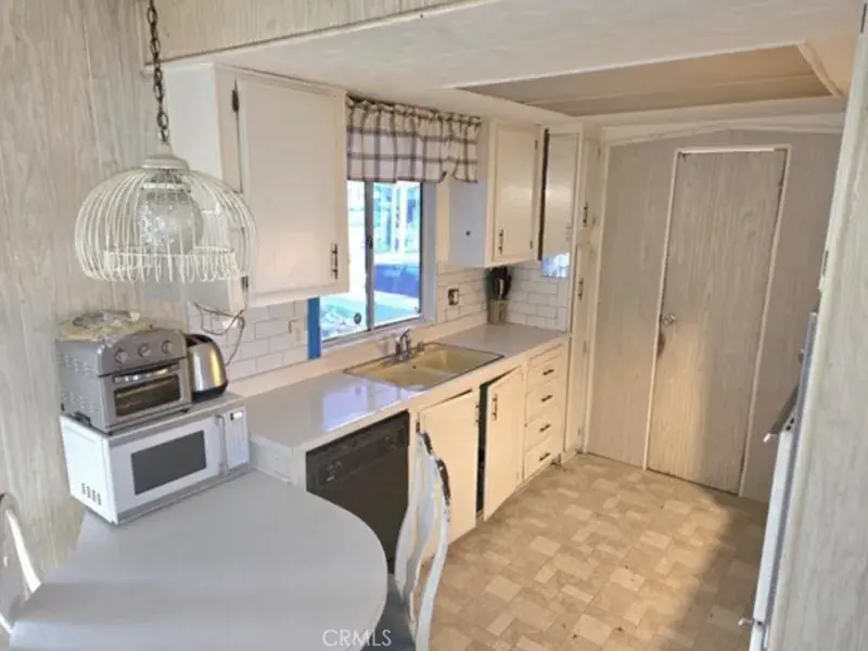 Welcome to Soboba Springs, a desirable 55+ community in San Jacinto. This spacious double-wide mobile home offers approximately 1,300 sq ft of comfortable living space with 2 bedrooms and 2 bathrooms. The home features a large living room and a functional kitchen with plenty of storage, including a cozy coffee nook with a built-in table.